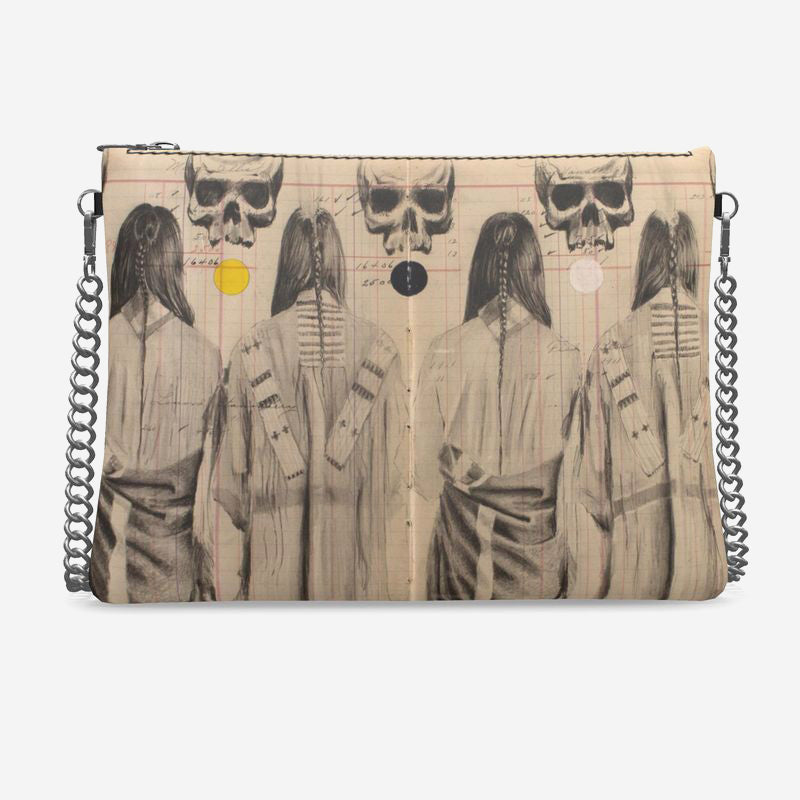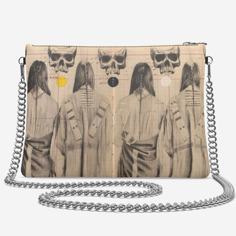 This beautiful designer crossbody bag is imprinted with Chris Pappan's Survival.
