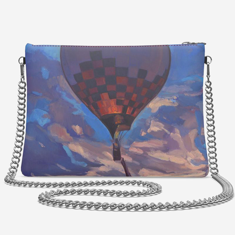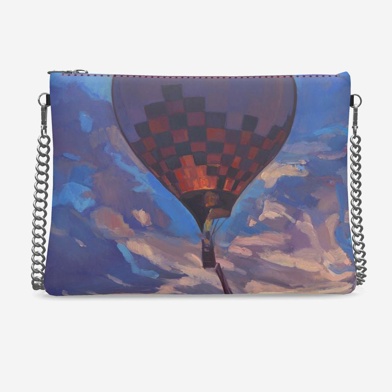 This beautiful designer crossbody bag is imprinted with Kathryn Stedham's Up and Away, Sandia Sky.