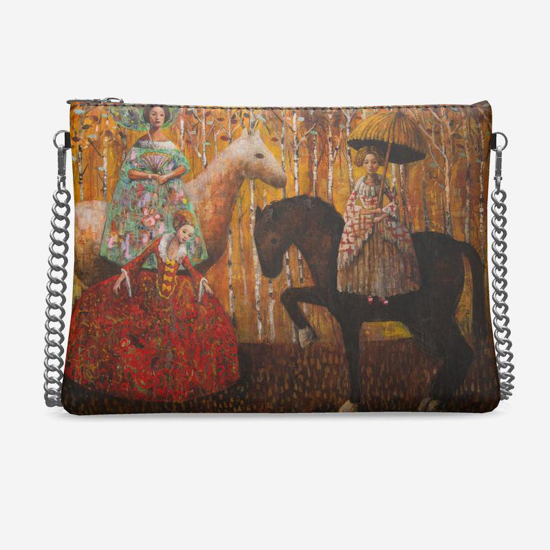 This beautiful designer crossbody bag is imprinted with Rimi Yang's Yellow.