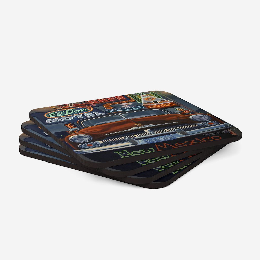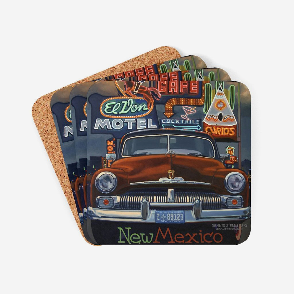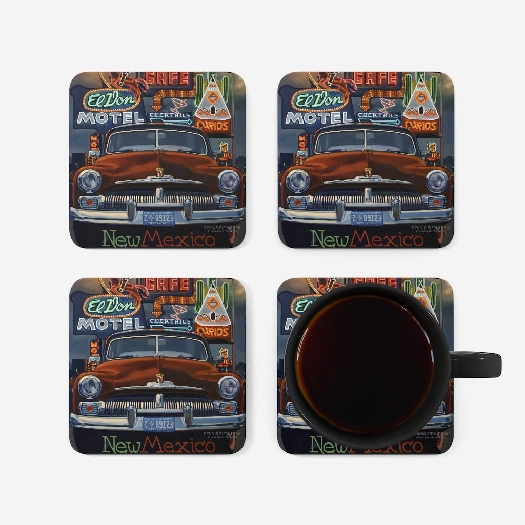Set of four coasters with a high-gloss top and feature a cork back to prevent sliding.