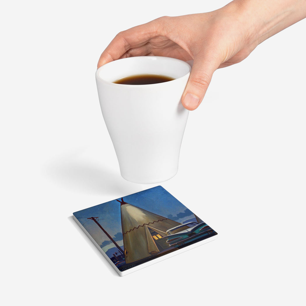 Add a splash of color and charm to your space with Dennis Ziemienski's WigWam Nocturne ceramic coasters. Use them while enjoying cozy coffee mornings or hosting parties with friends and family—keeping surfaces safe and stylish.