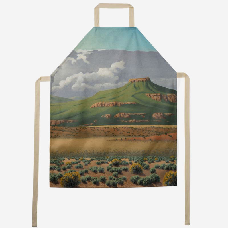 Aprons are handmade and printed with Doug West’s Pedernal Morning