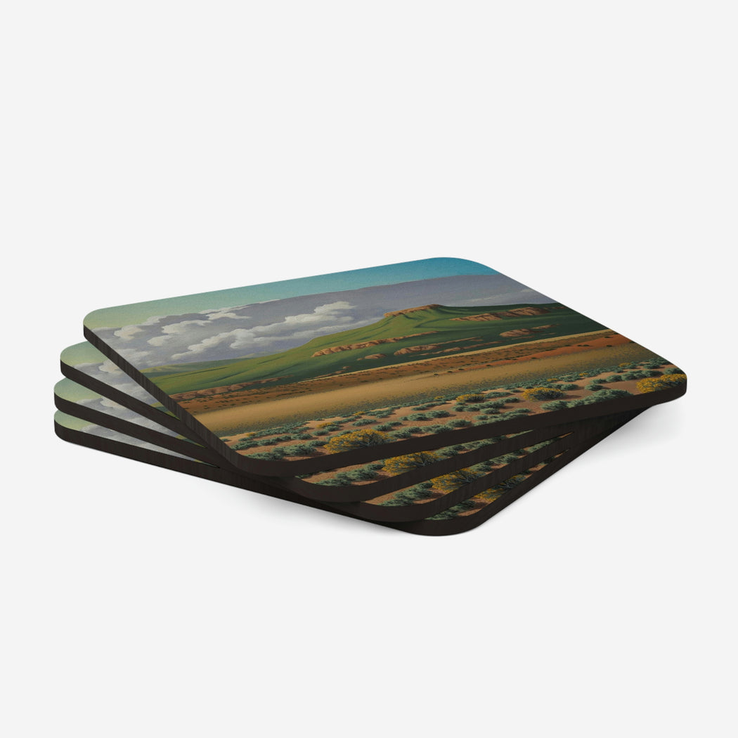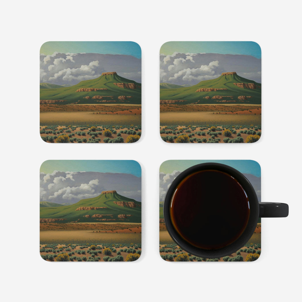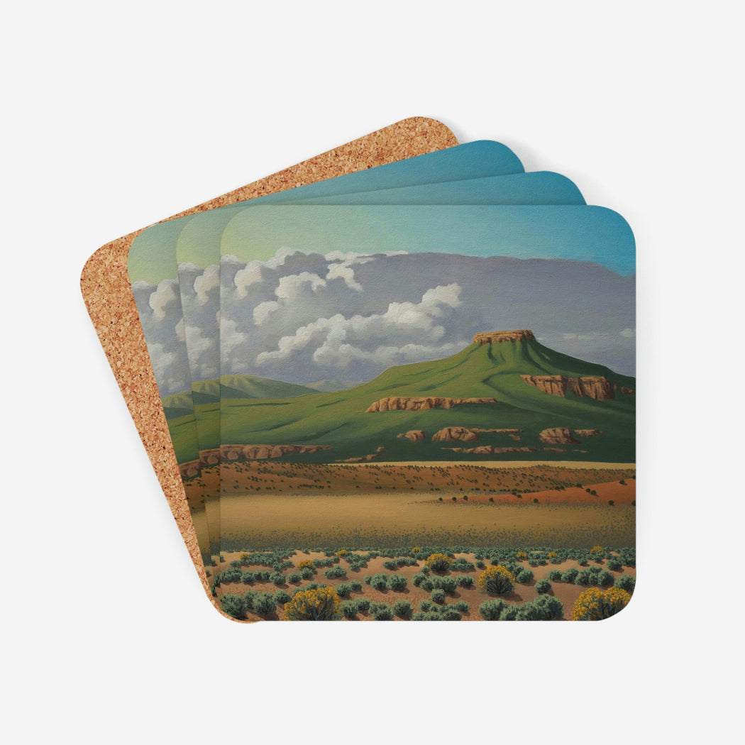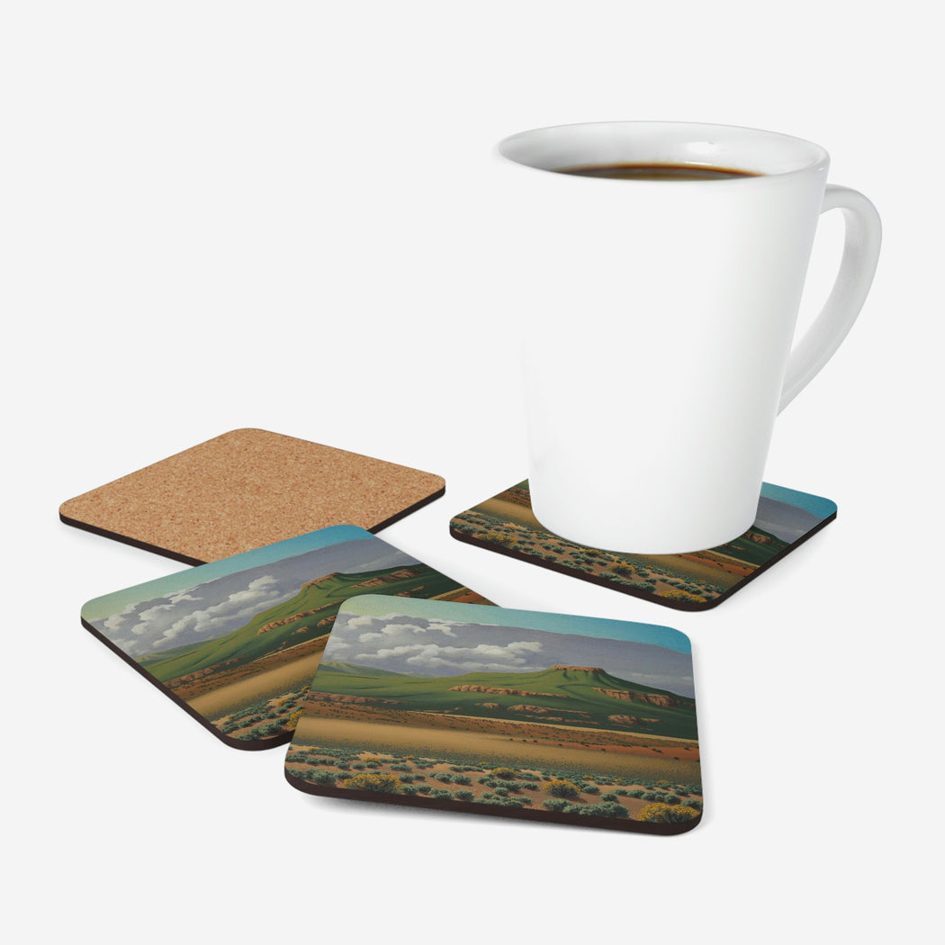 Set of four coasters with a high-gloss top and feature a cork back to prevent sliding.