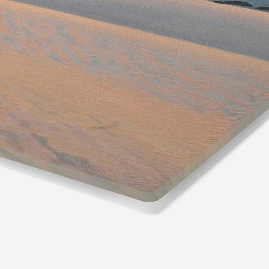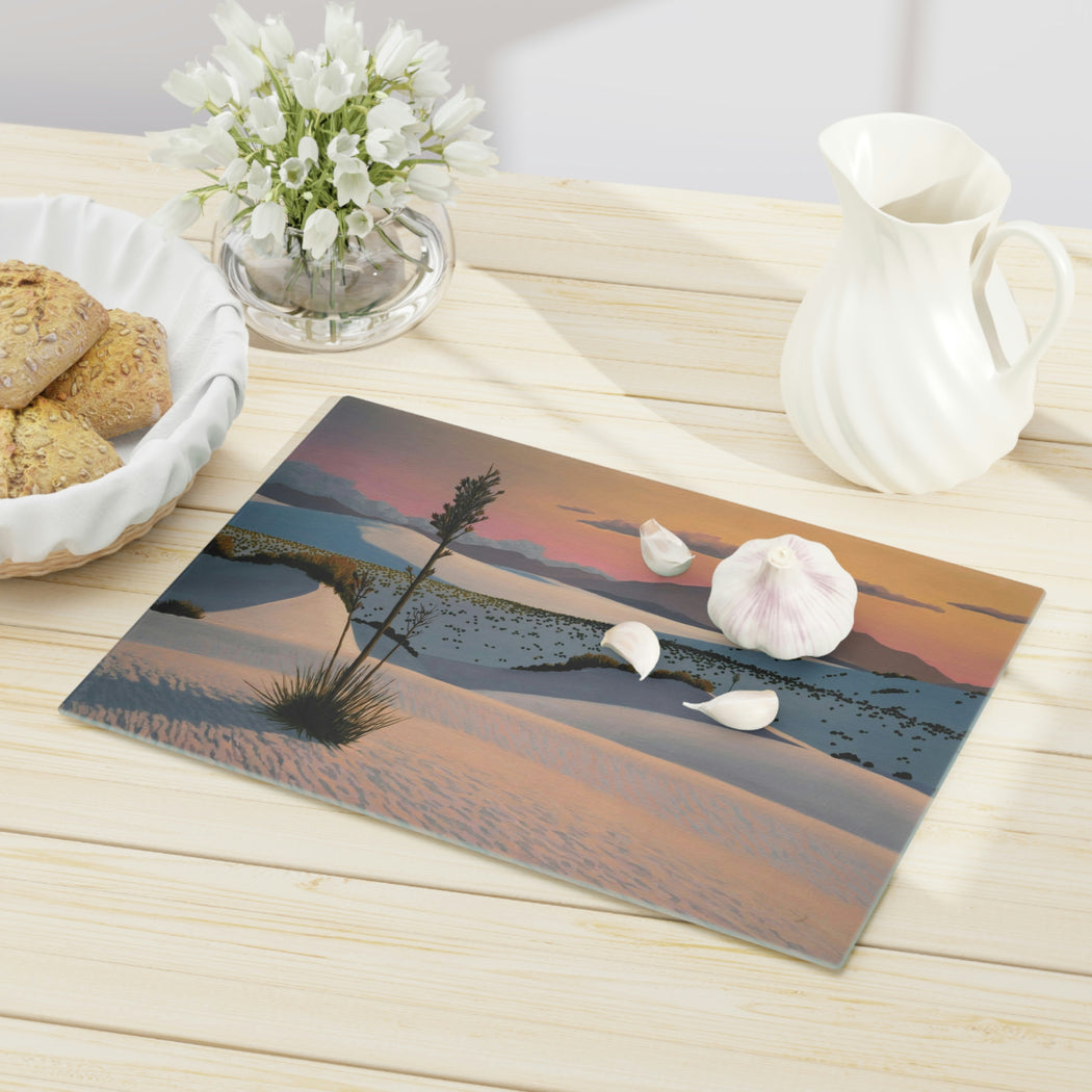 This glass serving tray is perfect for serving your fine gourmet cheeses and crackers. A wonderfully unique addition to any chef’s arsenal with Doug West’s White Sands Dawn.