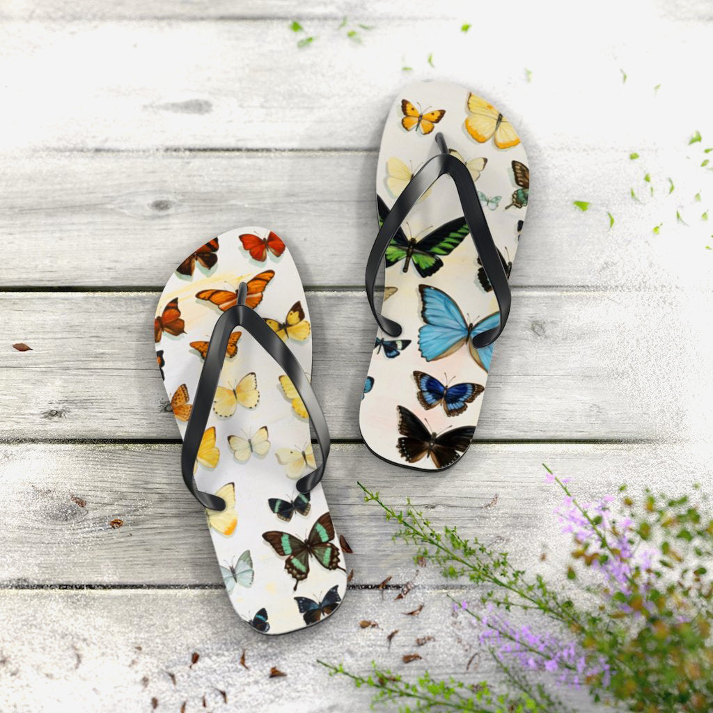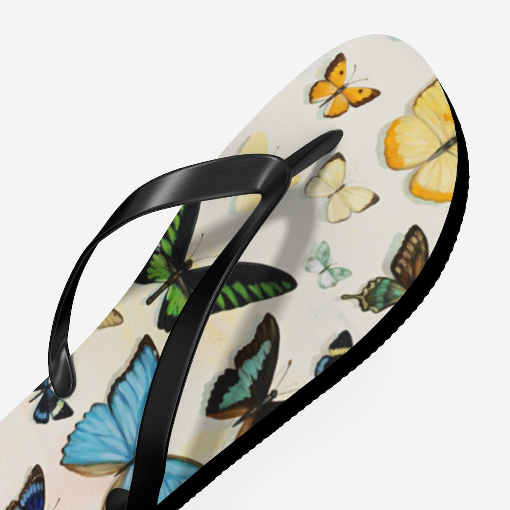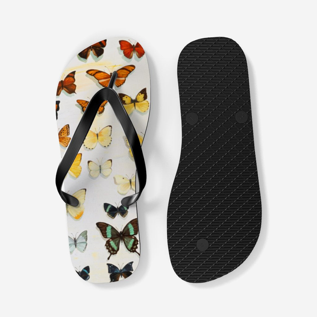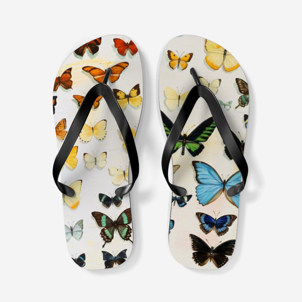 All day comfort is the name of the game when summer is on.  Easy slip-on design and a cushioned footbed, these flip flops are a guaranteed summer hit with Andrea Peterson’s Butterfly Rainbow.