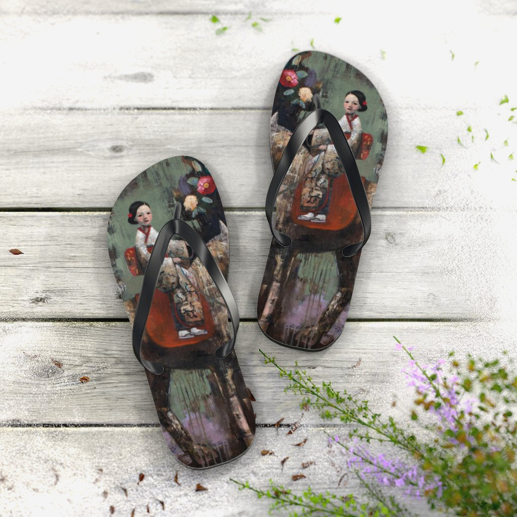 All day comfort is the name of the game when summer is on. Easy slip-on design and a cushioned footbed, these flip flops are a guaranteed summer hit with Rimi Yang’s Quiet Joy.