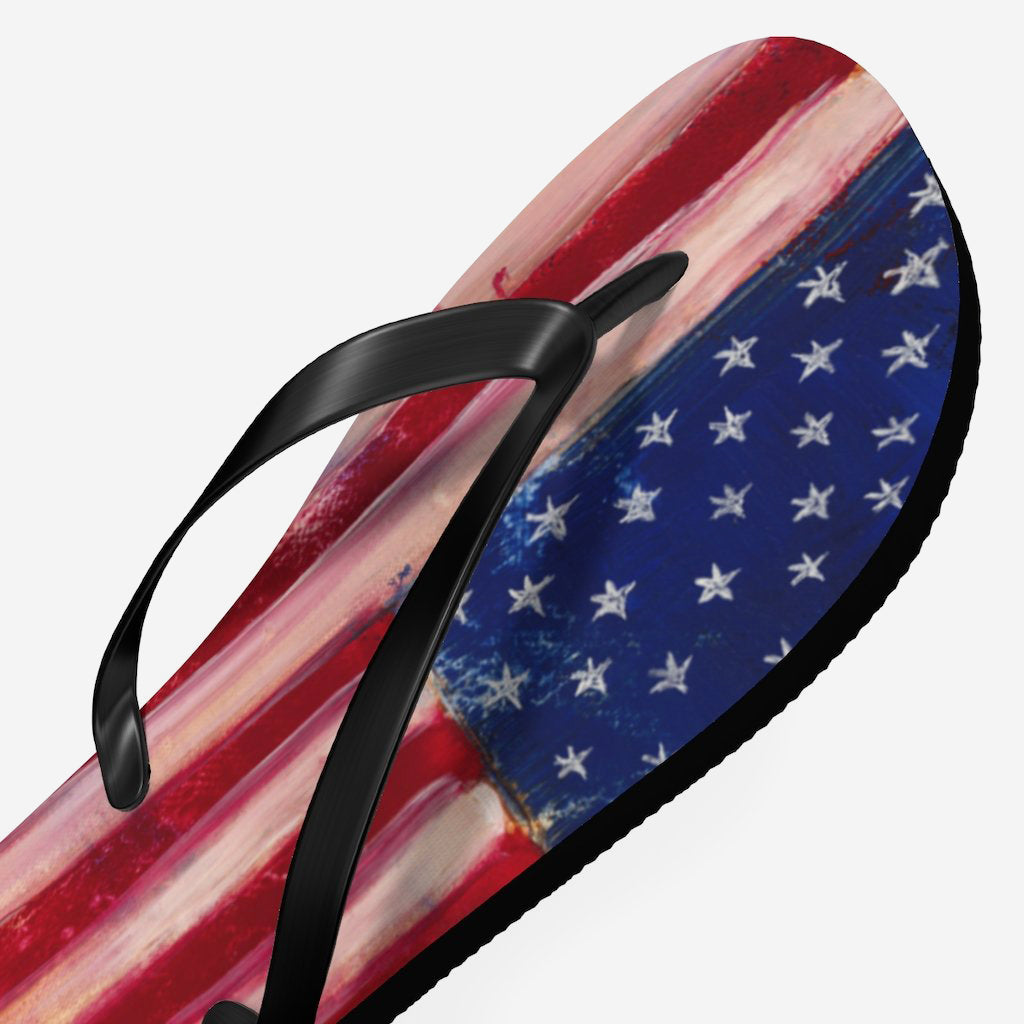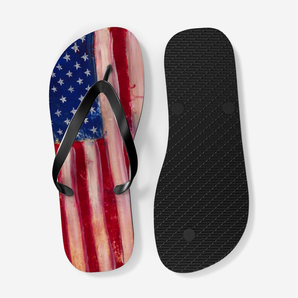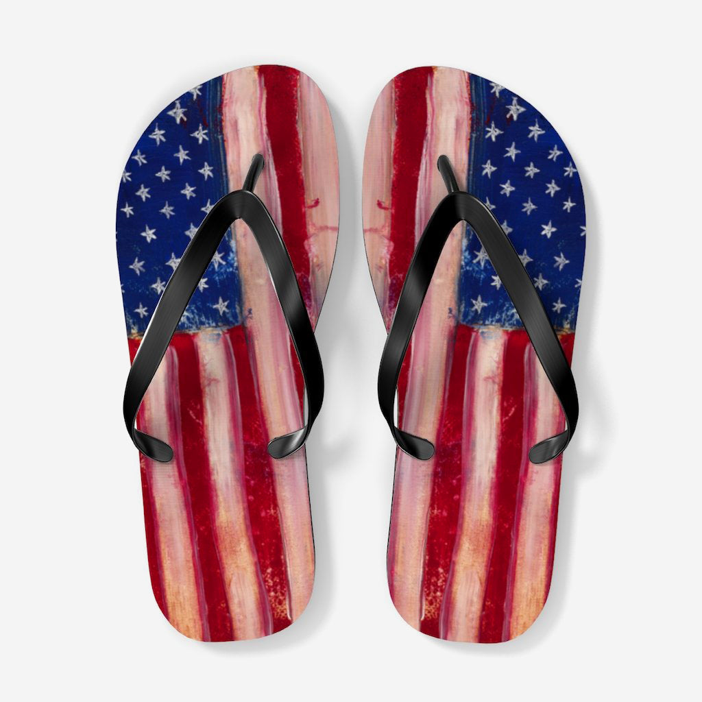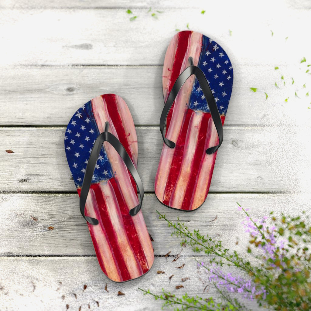 All day comfort is the name of the game when summer is on. Easy slip-on design and a cushioned footbed, these flip flops are a guaranteed summer hit with Larry D. Blissett’s US Flag.