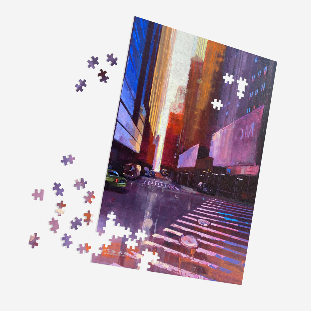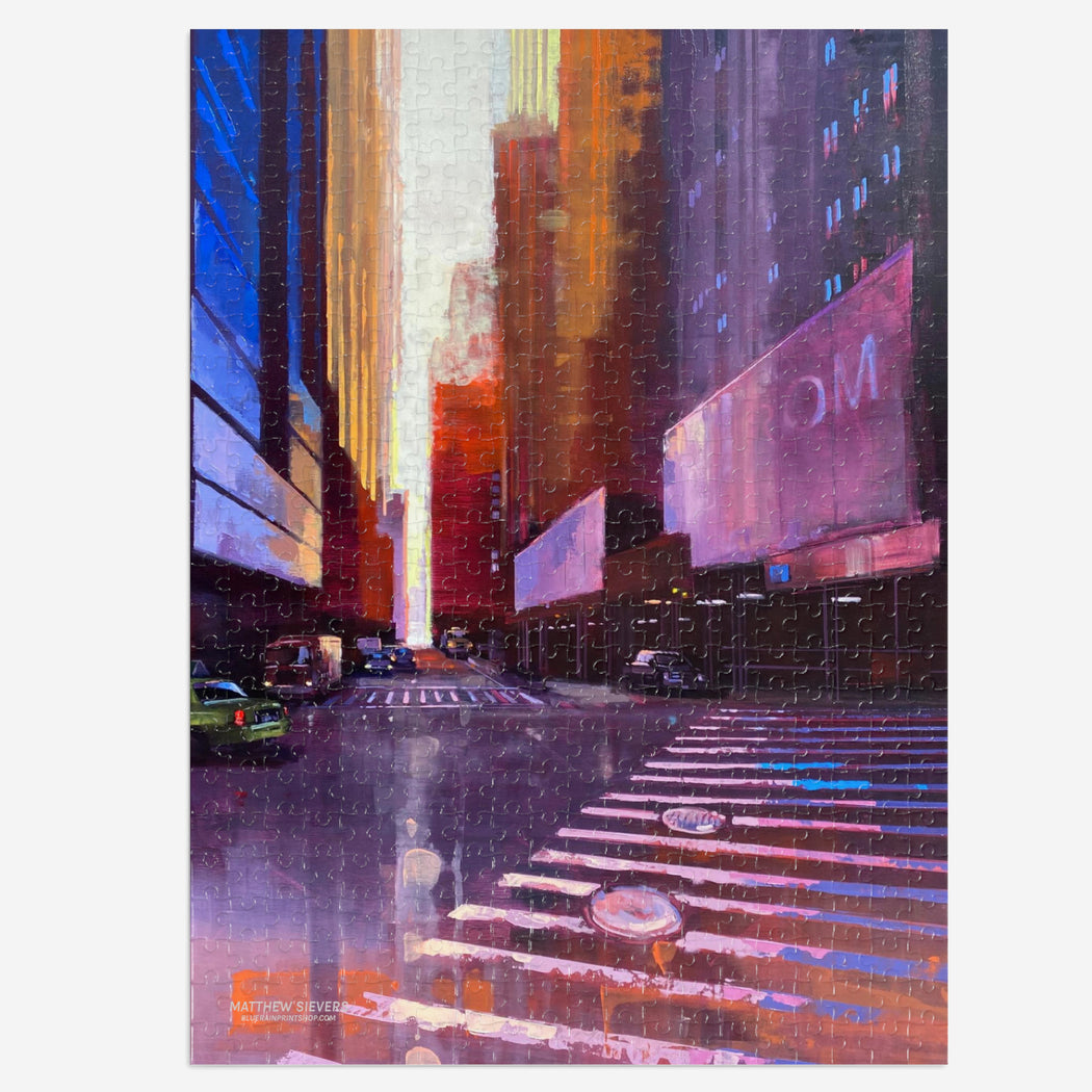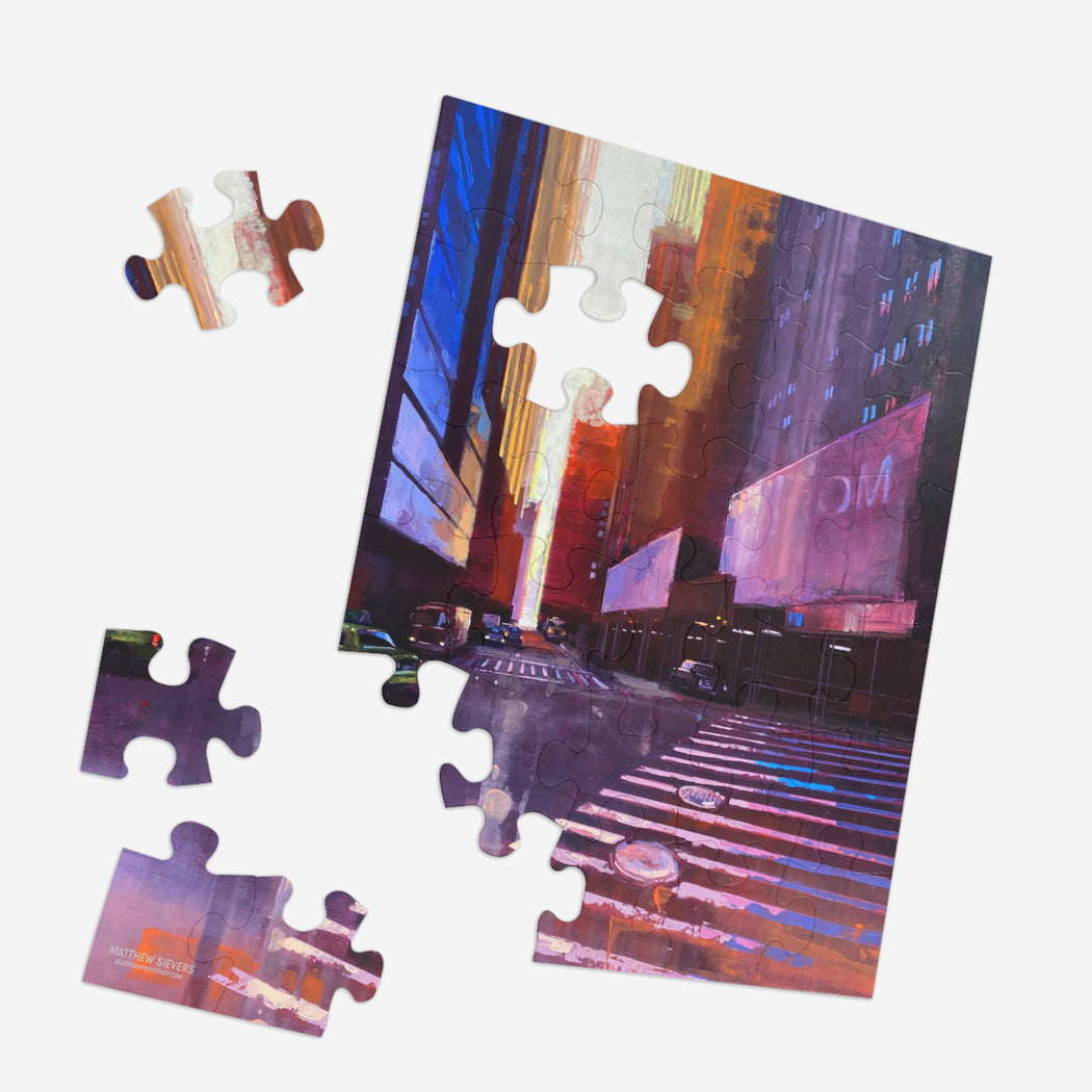 Challenging and fun for everyone, this puzzle is imprinted with Matthew Sievers At The Crosswalk.
