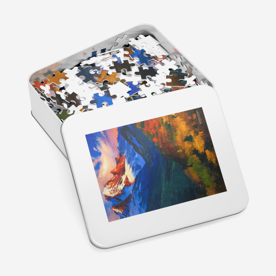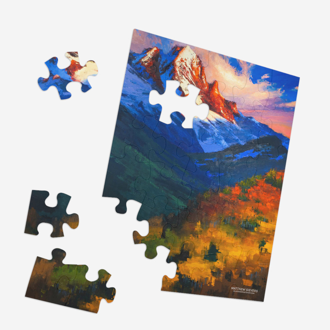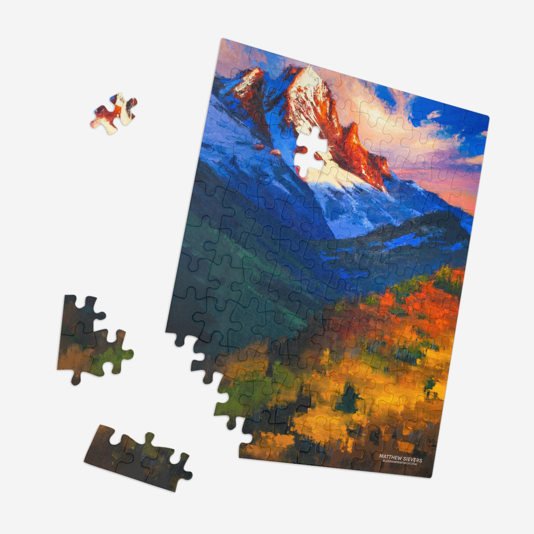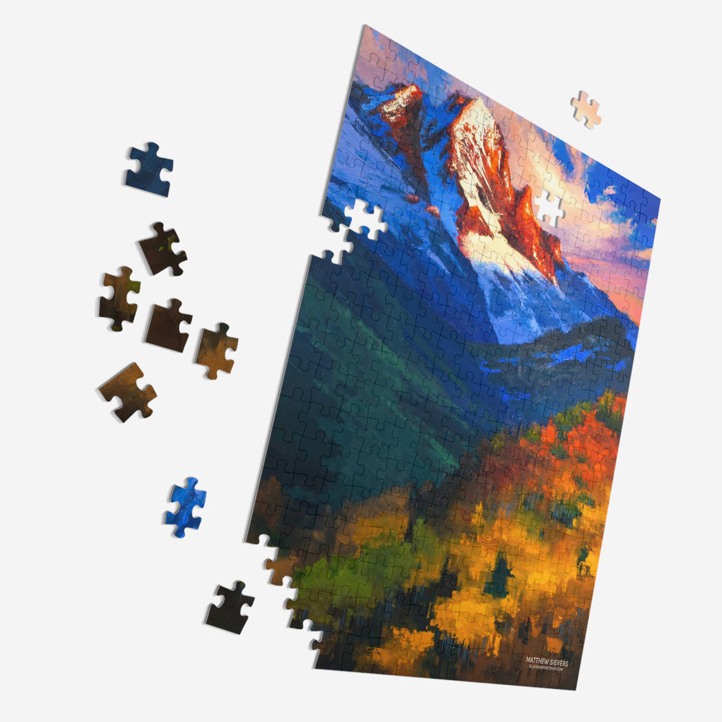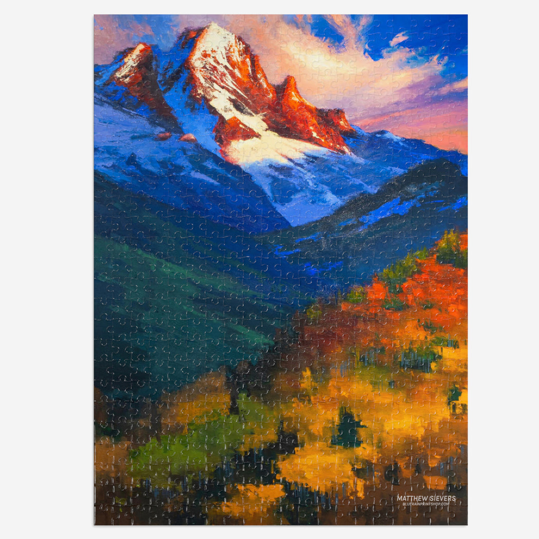 Challenging and fun for everyone, this puzzle is imprinted with Matthew Sievers Mt. Sneffels.