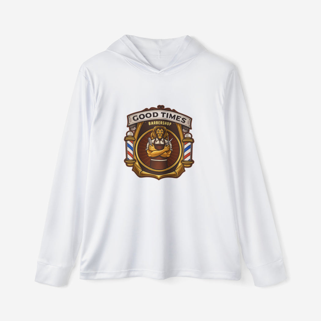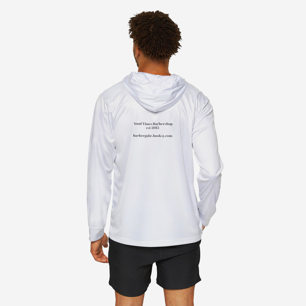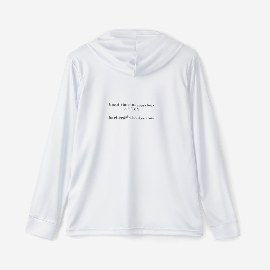 Whether it's hiking, working out, cycling, running, or simply lounging on a casual day, these hoodies remain breathable, stylish, and totally comfy. Printed with imagery by Good Times Barbershop.
