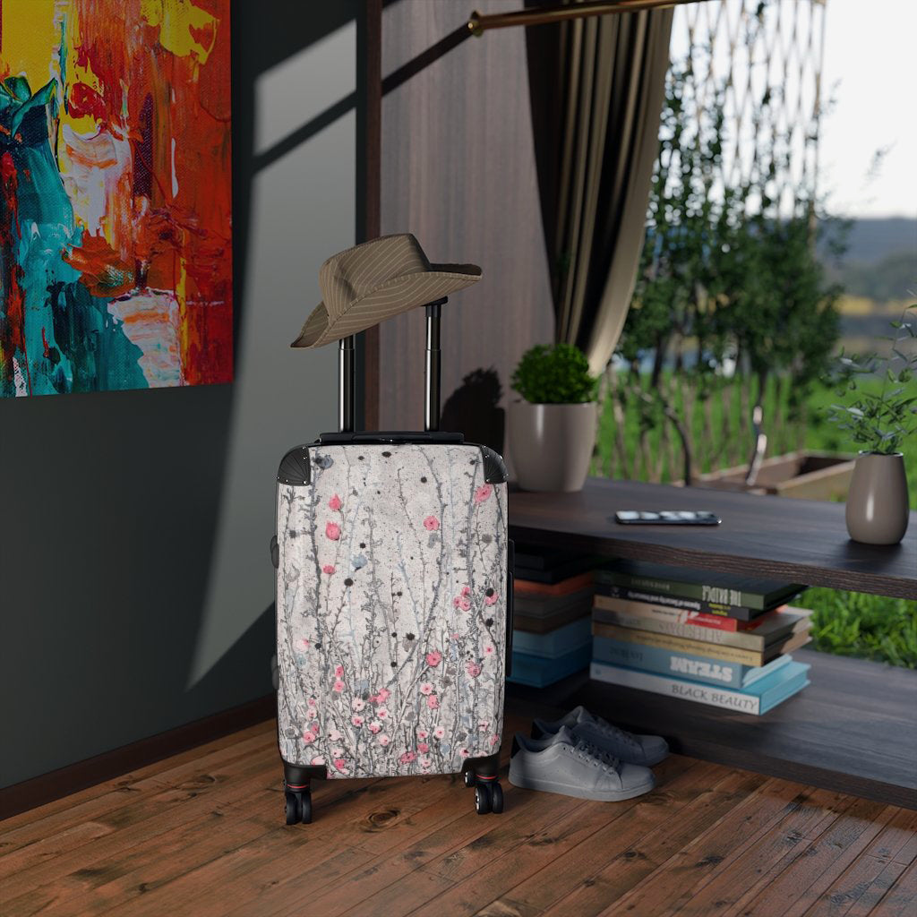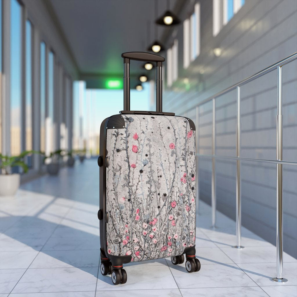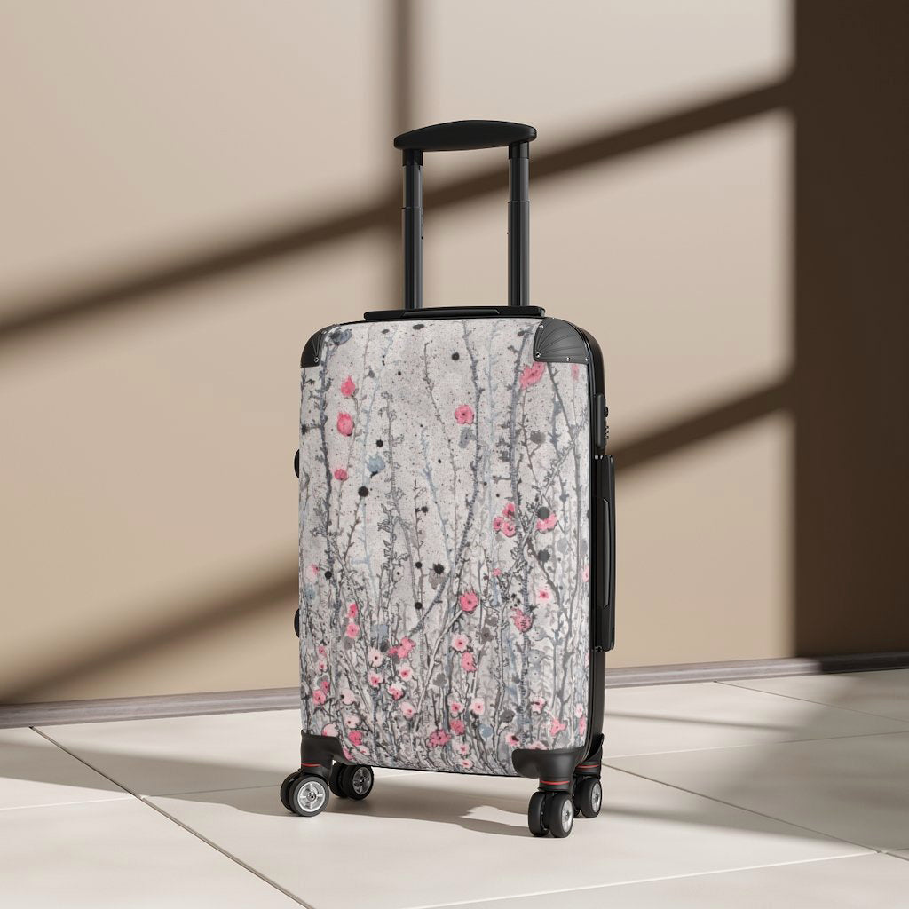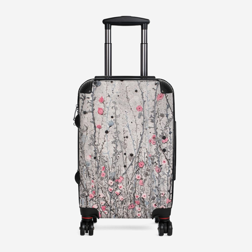Make a bold statement with this wheeled carry on imprinted with Helen K. Tindel’s Mother’s Love.