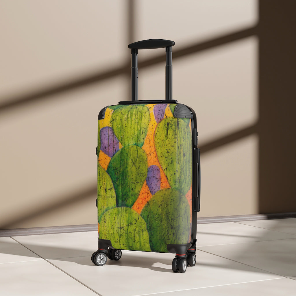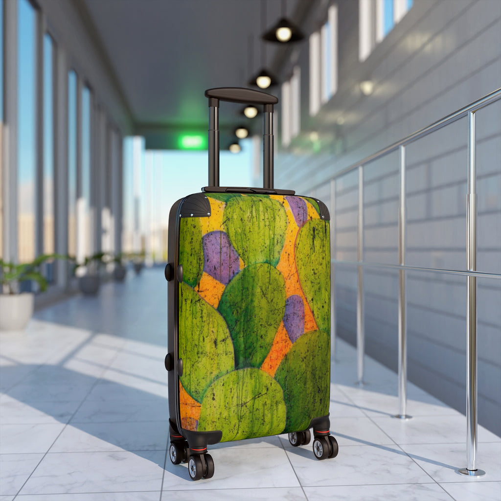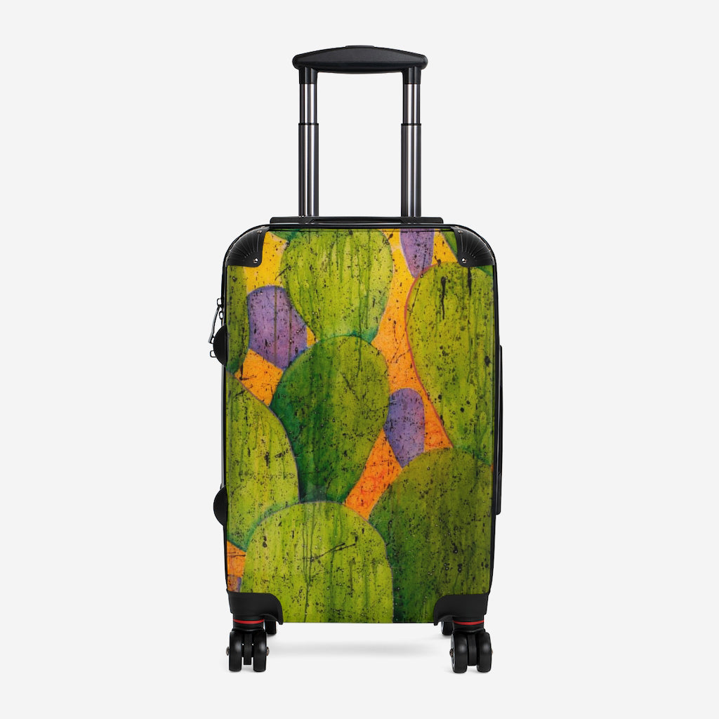 Make a bold statement with this wheeled carry on imprinted with Helen K. Tindel’s Spikes and Splatters.