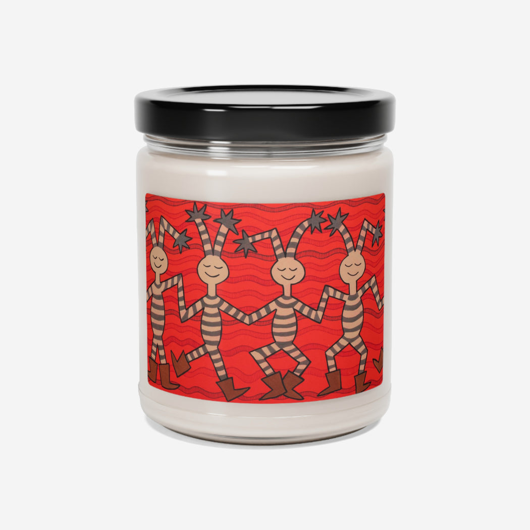 Packed with immersive aromas, these scented candles are made with 100% natural soy wax blend. Printed with Jody Naranjo's After Indian Market.