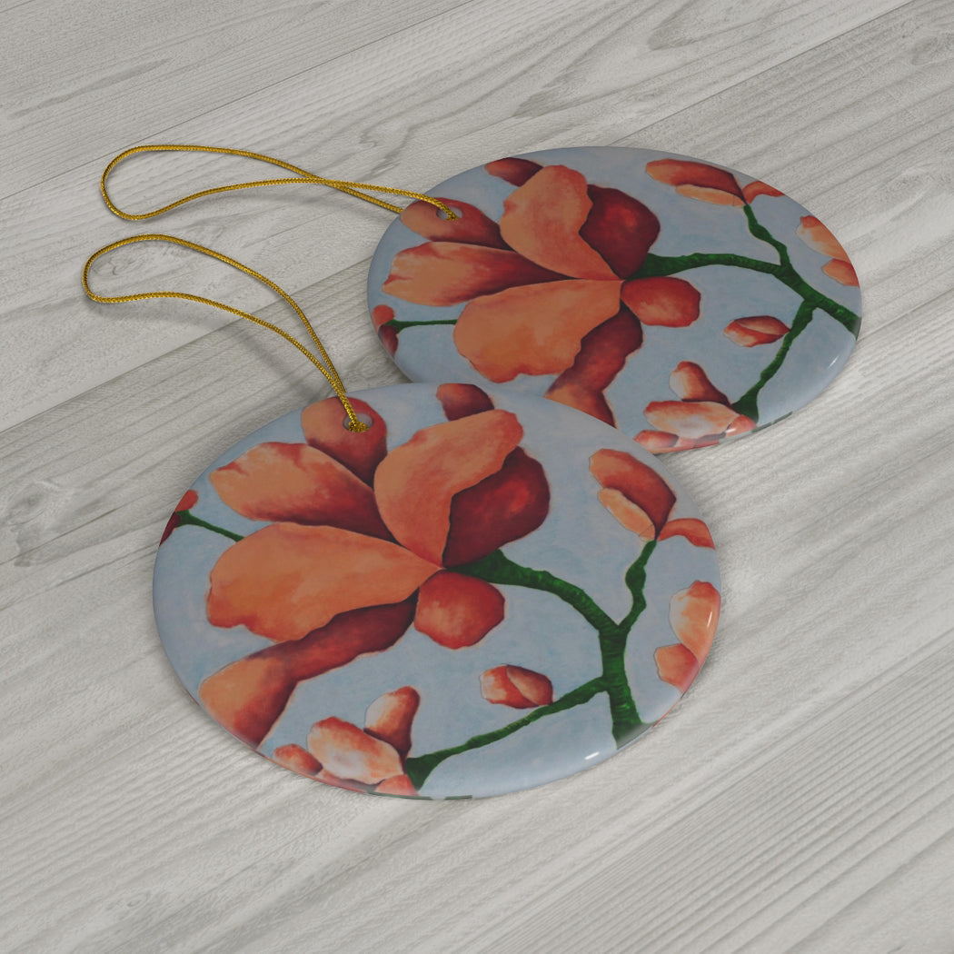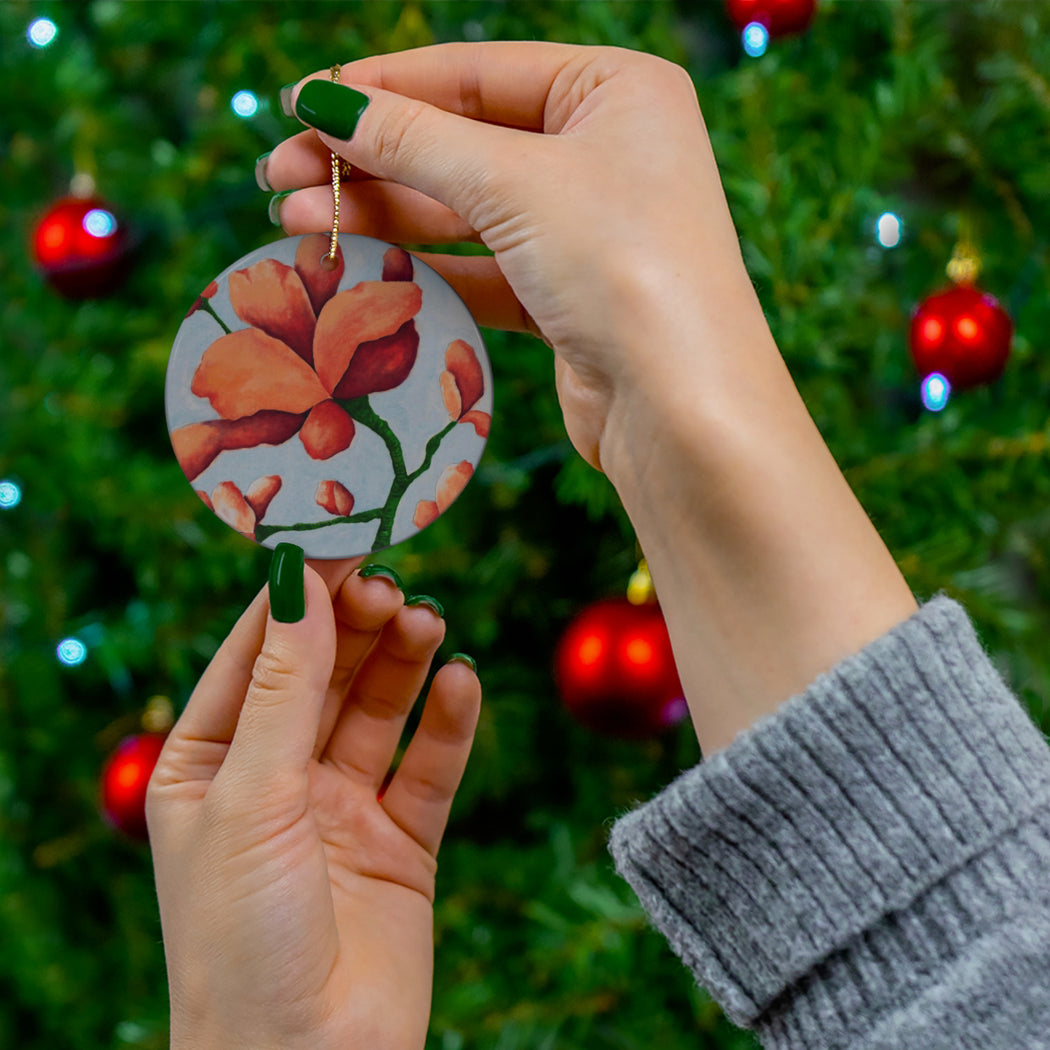This custom-made ceramic ornament can be the perfect heirloom to use year after year, printed with Helen K. Tindel’s Como la Flor.