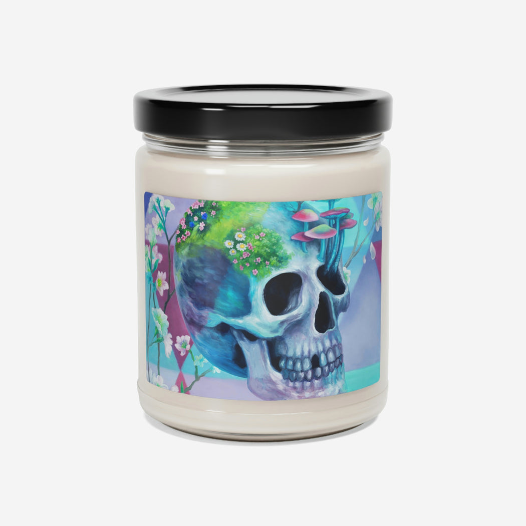 Packed with immersive aromas, these scented candles are made with 100% natural soy wax blend. Printed with Andrea Peterson's Eternal Bloom.