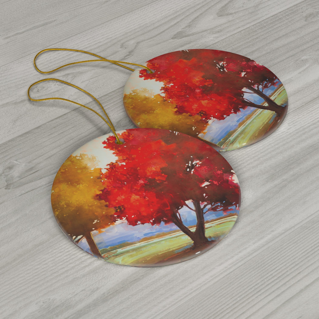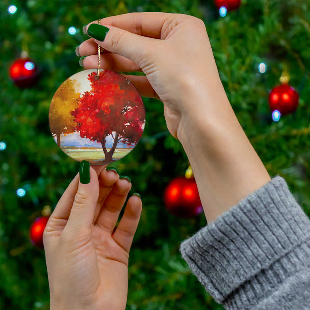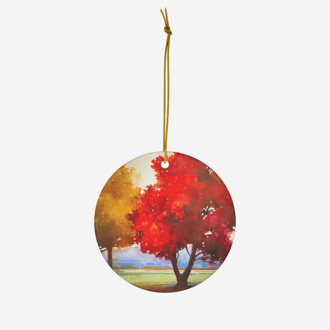 This custom-made ceramic ornament can be the perfect heirloom to use year after year, printed with Matthew Sievers Misty Morning Sunny Afternoon.