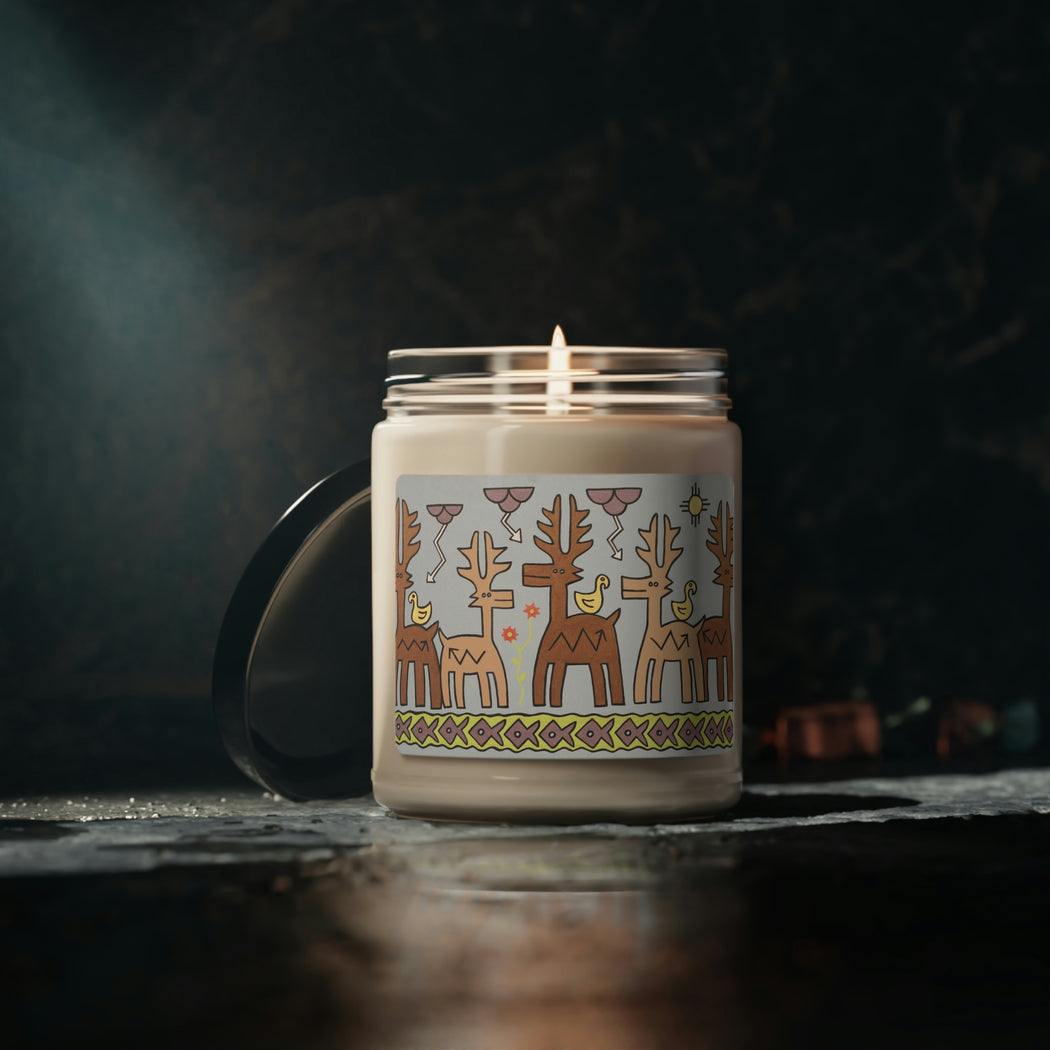 Packed with immersive aromas, these scented candles are made with 100% natural soy wax blend.  Printed with Jody Naranjo's Oh, My Deer!