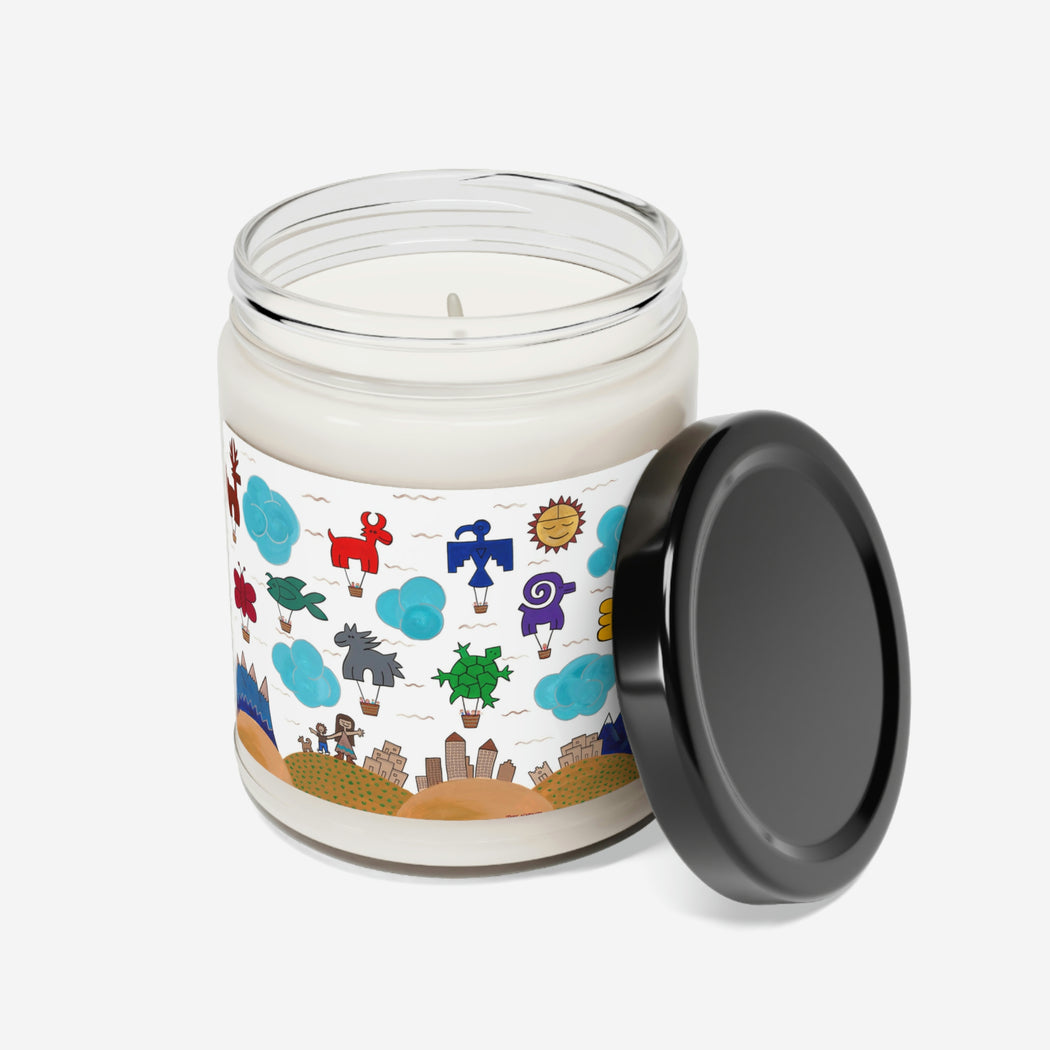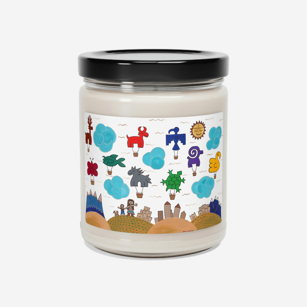 Packed with immersive aromas, these scented candles are made with 100% natural soy wax blend.  Printed with Jody Naranjo's Pueblo Shapes.