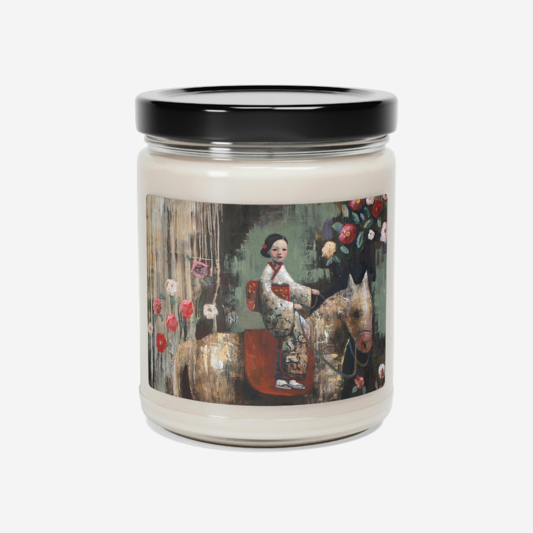 Packed with immersive aromas, these scented candles are made with 100% natural soy wax blend. Printed with Rimi Yang's Quiet Joy.