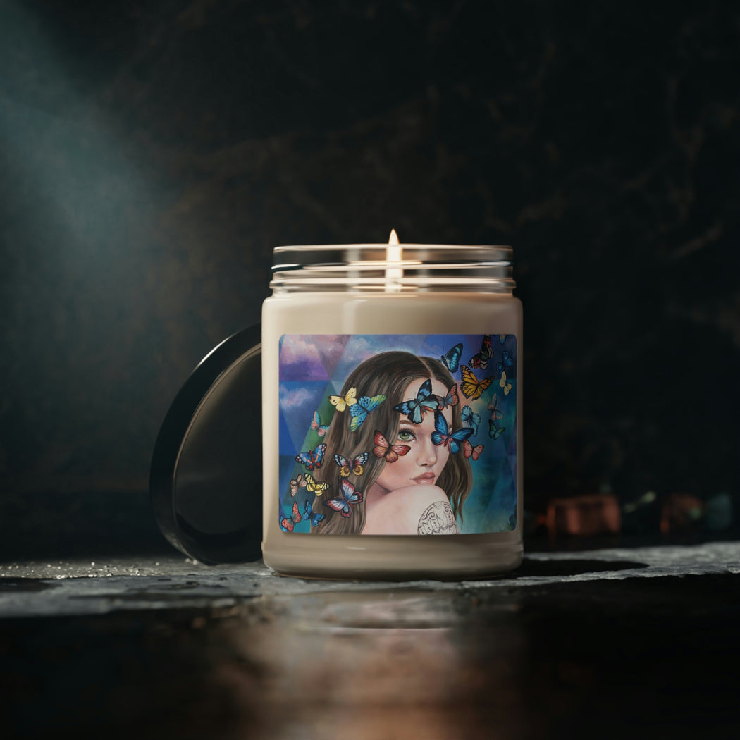 Packed with immersive aromas, these scented candles are made with 100% natural soy wax blend.  Printed with Andrea Peterson's Silver Linings.