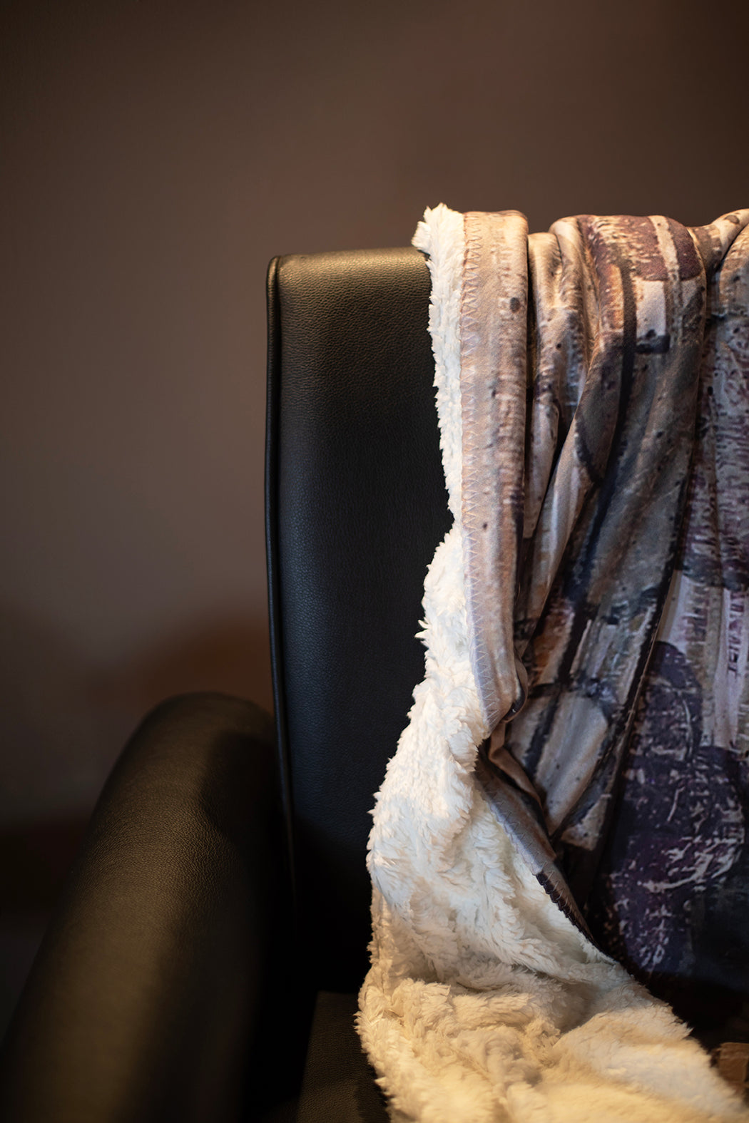 Unbelievably fluffy and warm, this blanket is imprinted with Helen K. Tindel's Thunder Blooms. It's the perfect size for snuggling on the couch, by the fireplace or at outdoor events.