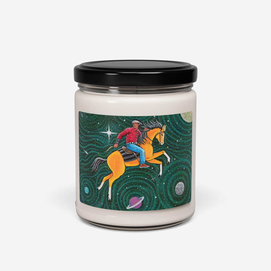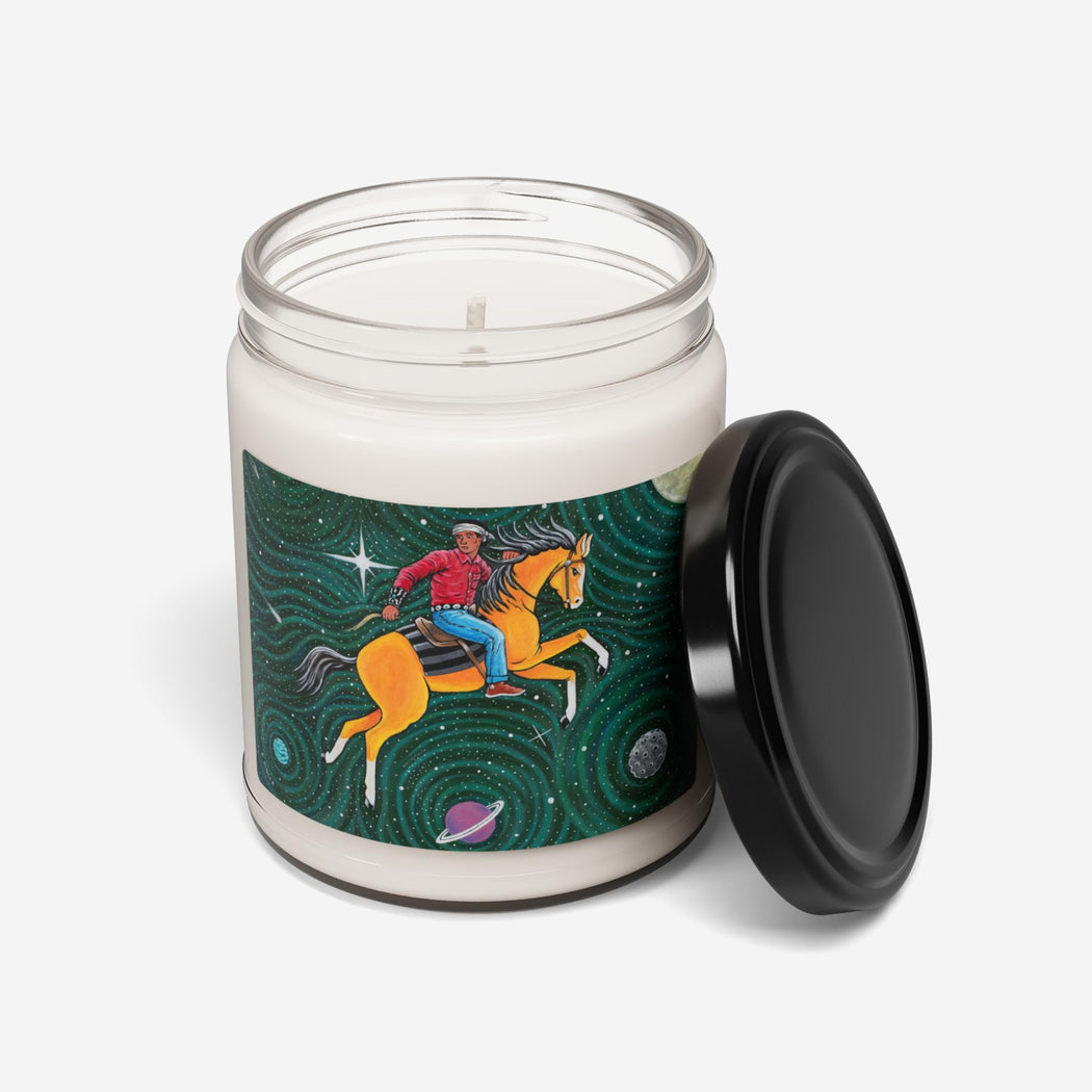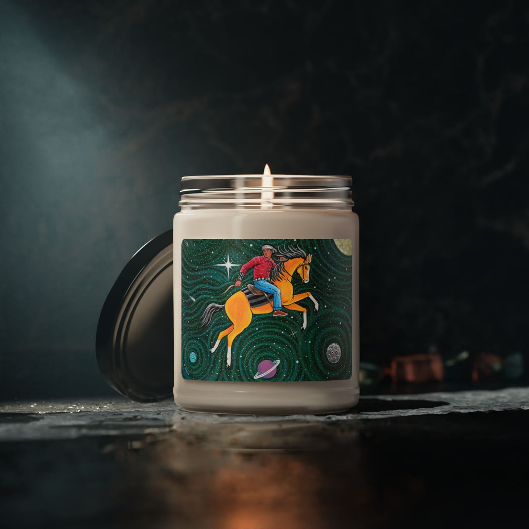 Packed with immersive aromas, these scented candles are made with 100% natural soy wax blend.  Printed with Ryan Singer's Yádiłhił (Outer Space).