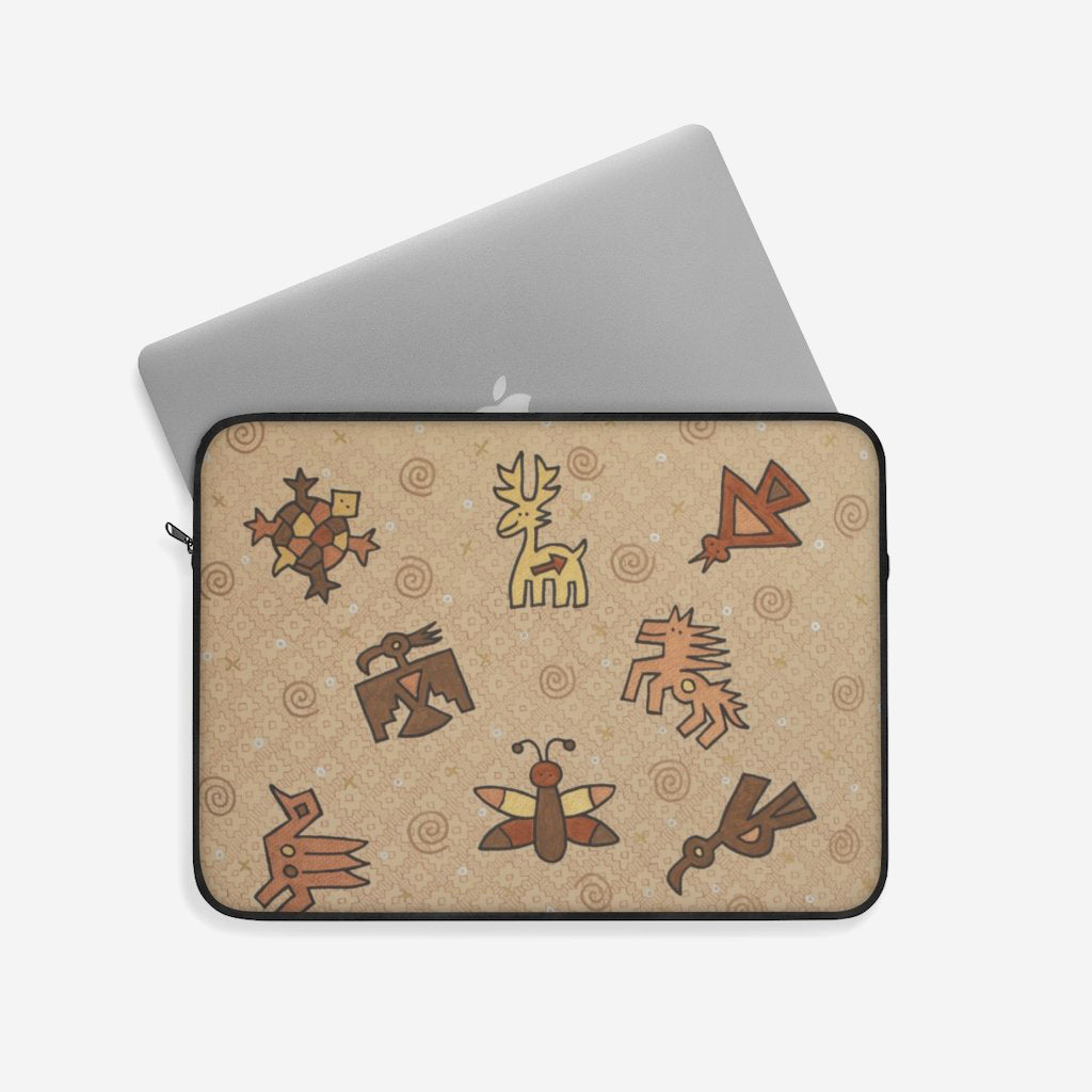 This beautiful laptop sleeve is imprinted with Jody Naranjo’s Pueblo Constellations. Available in three sizes, the sleeves protect a laptop from scratches and minor impacts. Comes with a black back, edging and zip.