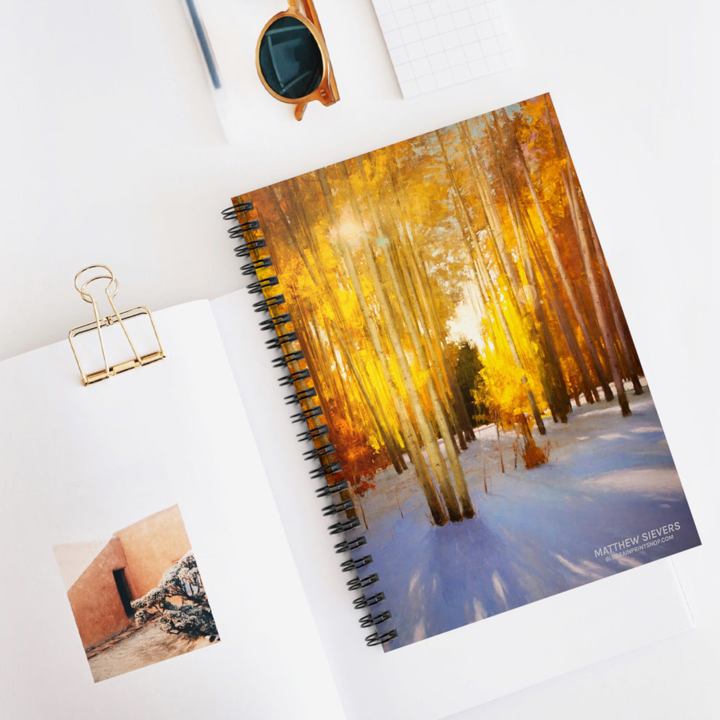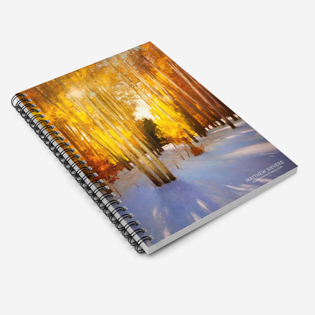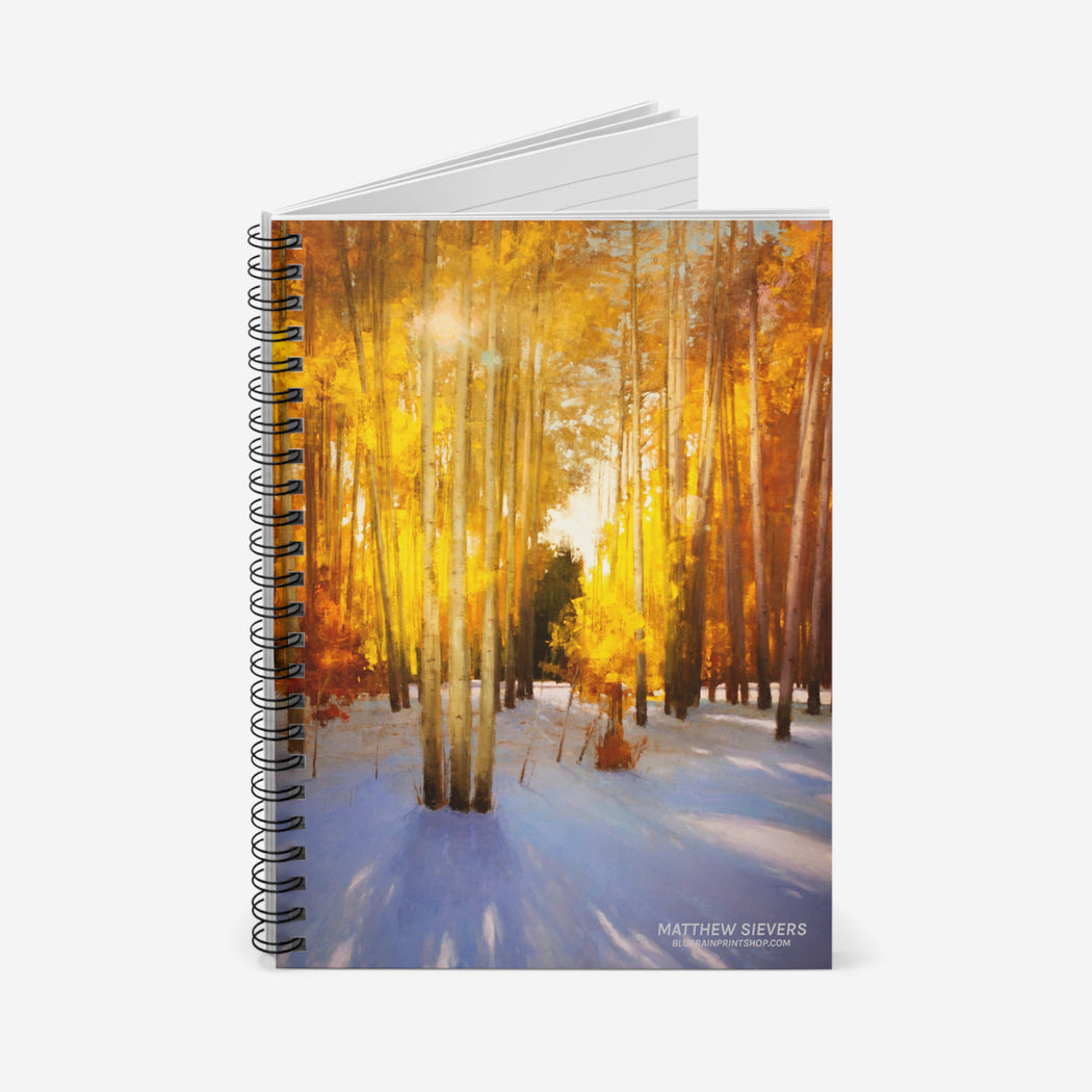 This spiral notebook is imprinted with Matthew Sievers Aspen Shadows. Shopping lists, school notes or poems — a perfect companion for everyday life.