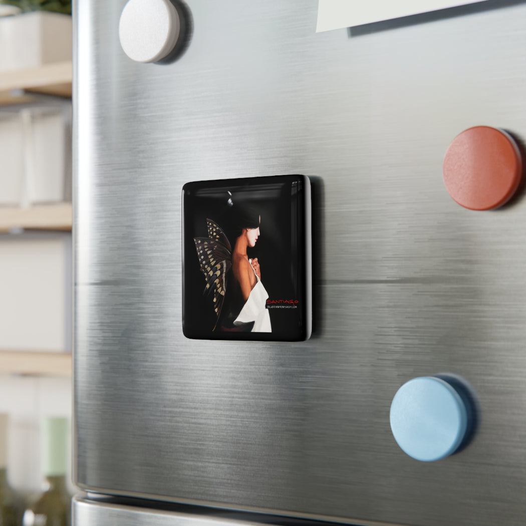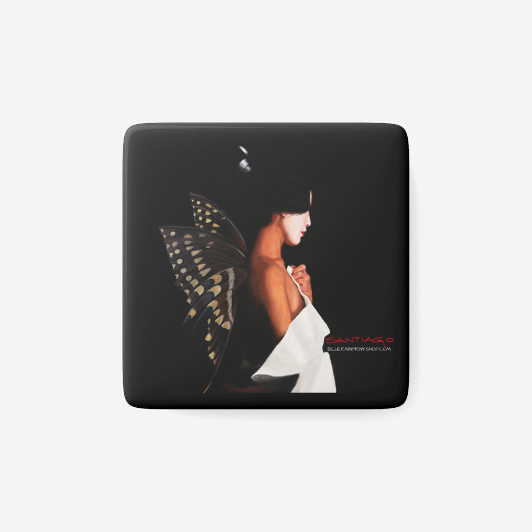 Refrigerator magnet printed with Roseta Santiago's Butterfly Woman.
