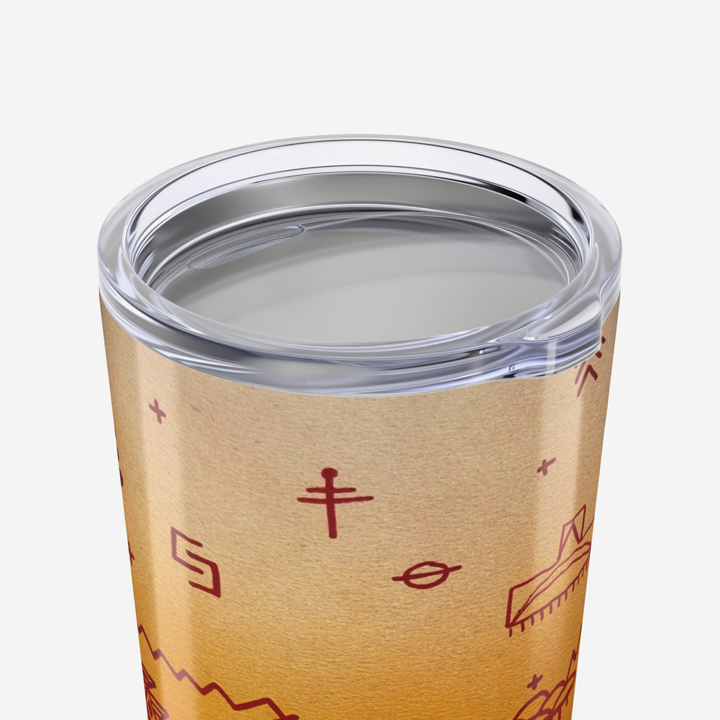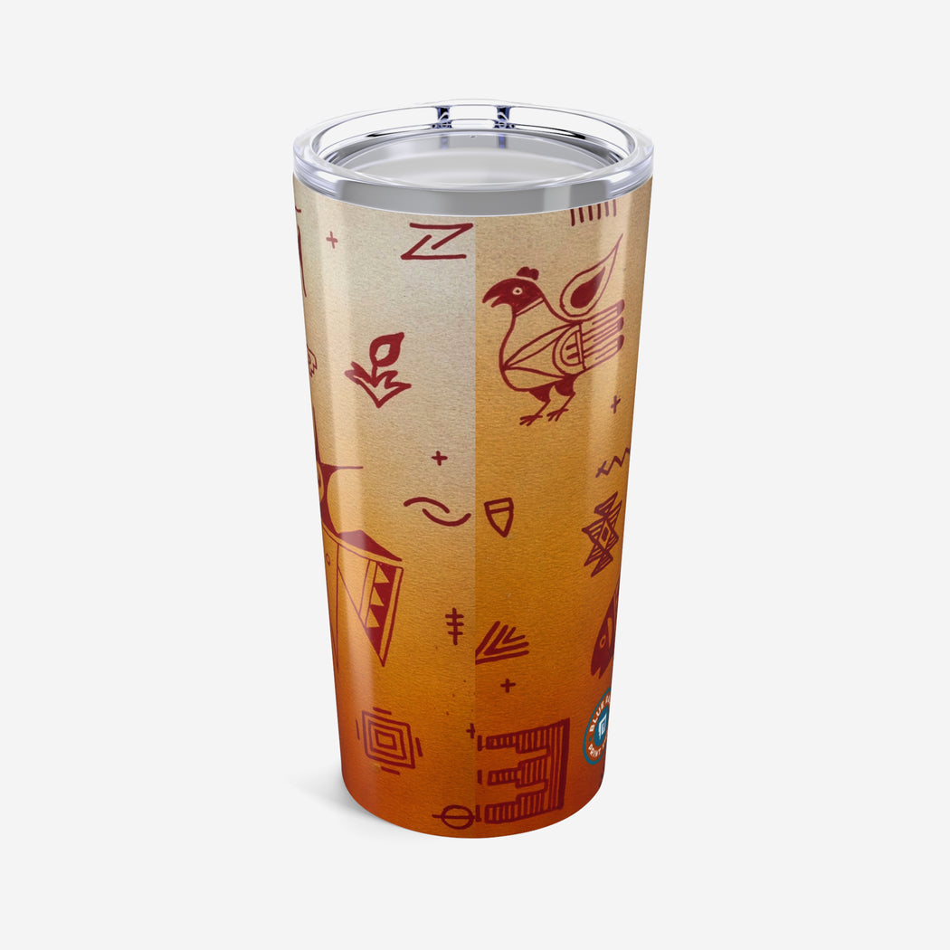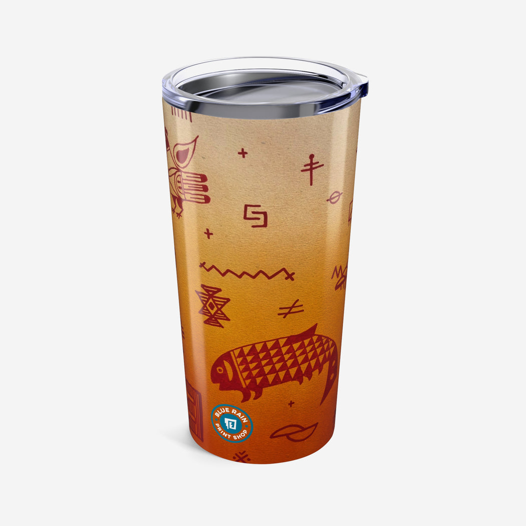 This 20oz tumbler is imprinted with Jesse Littlebird's Glyph Flash Sheet no. 3. A stainless travel-size tumbler, it's vacuum-insulated and built to last. It's perfect to express your style.