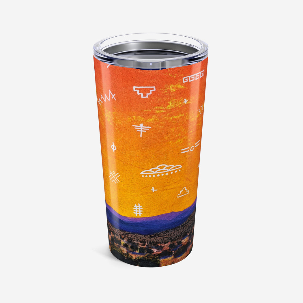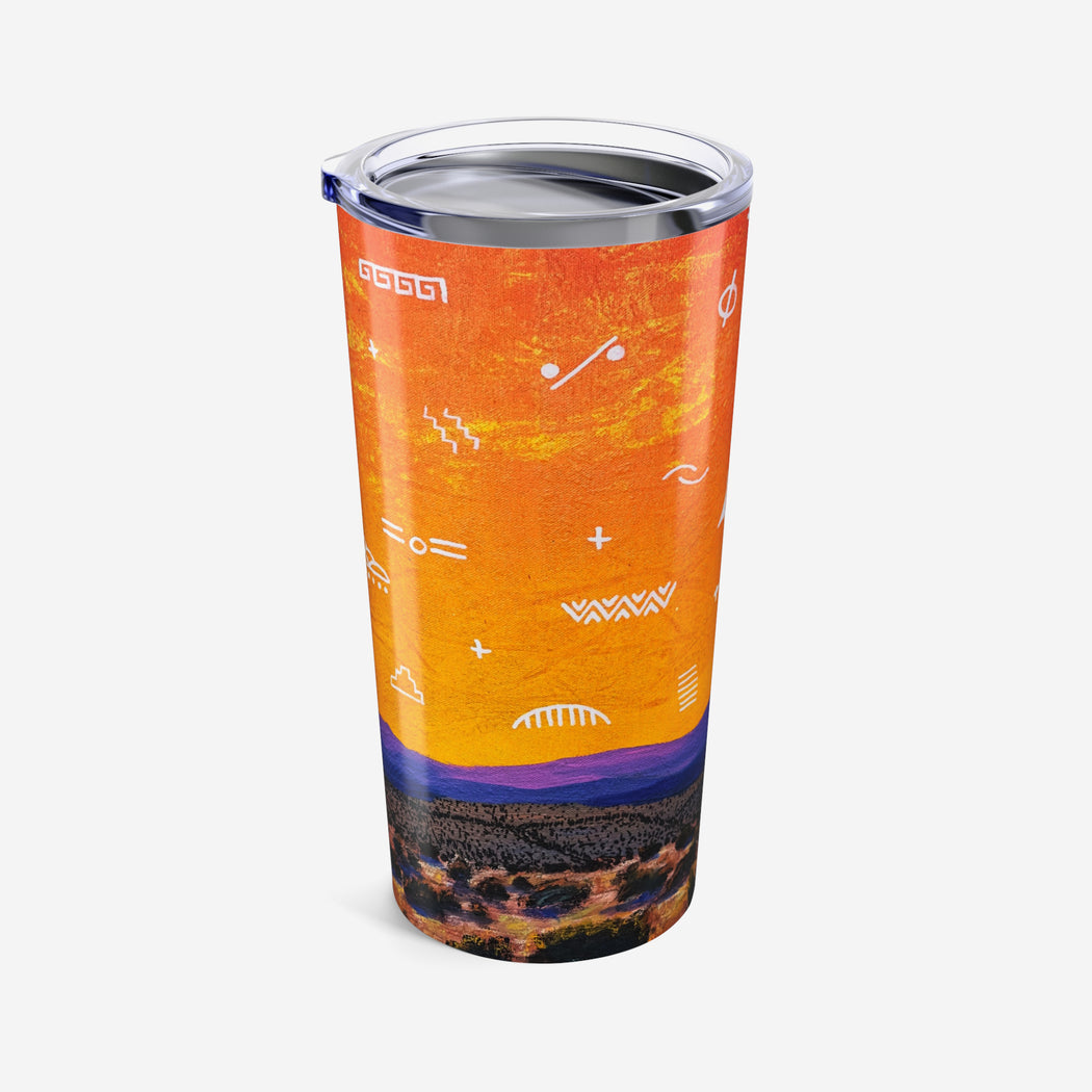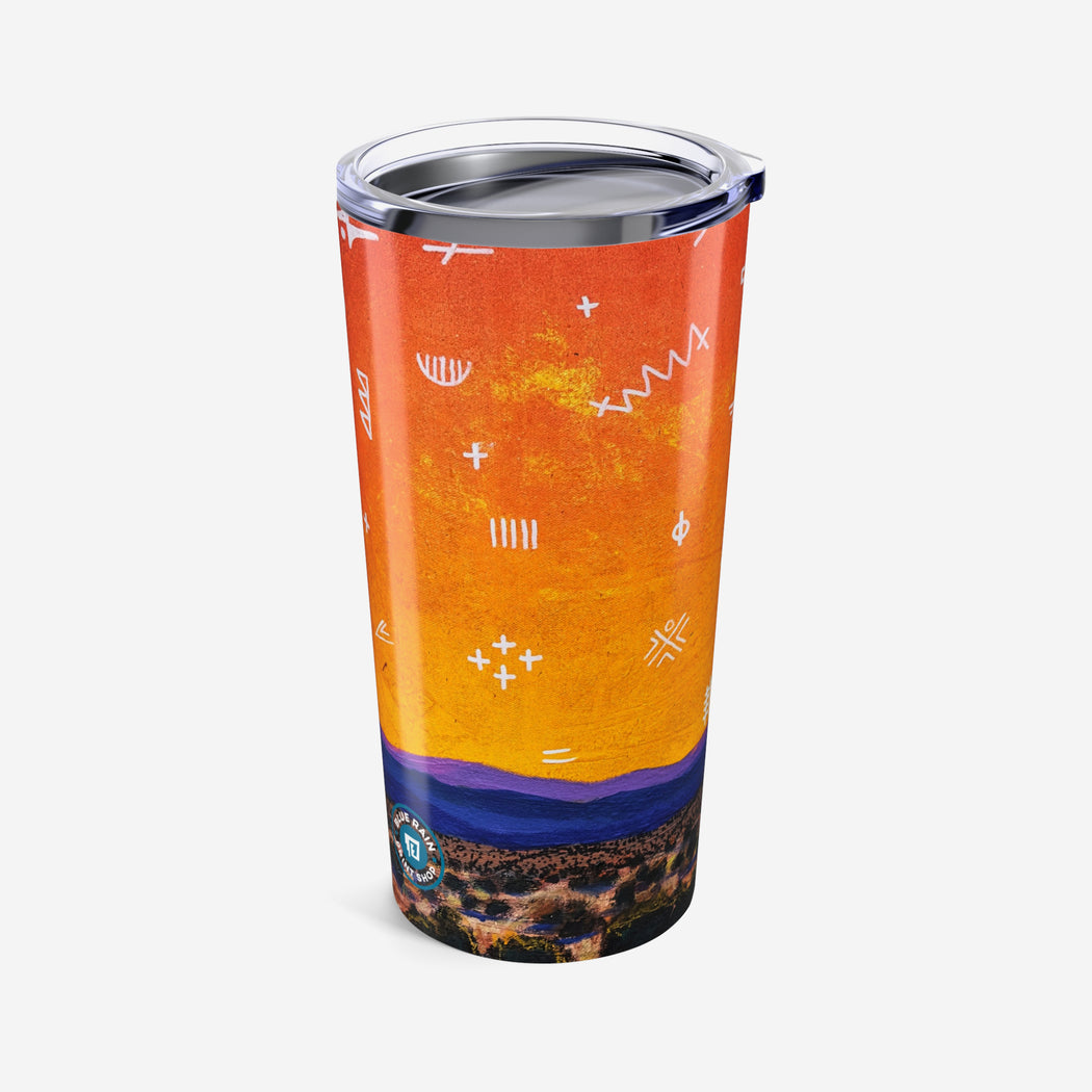 This 20oz tumbler is imprinted with Jesse Littlebird's Kewa Golden Hour. A stainless travel-size tumbler, it's vacuum-insulated and built to last. It's perfect to express your style.