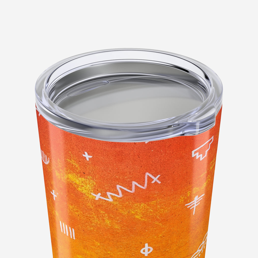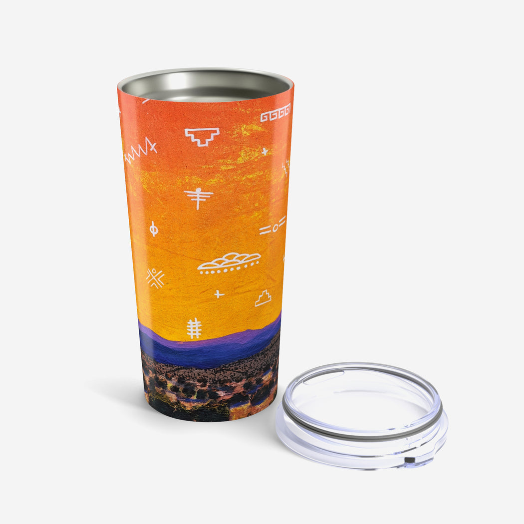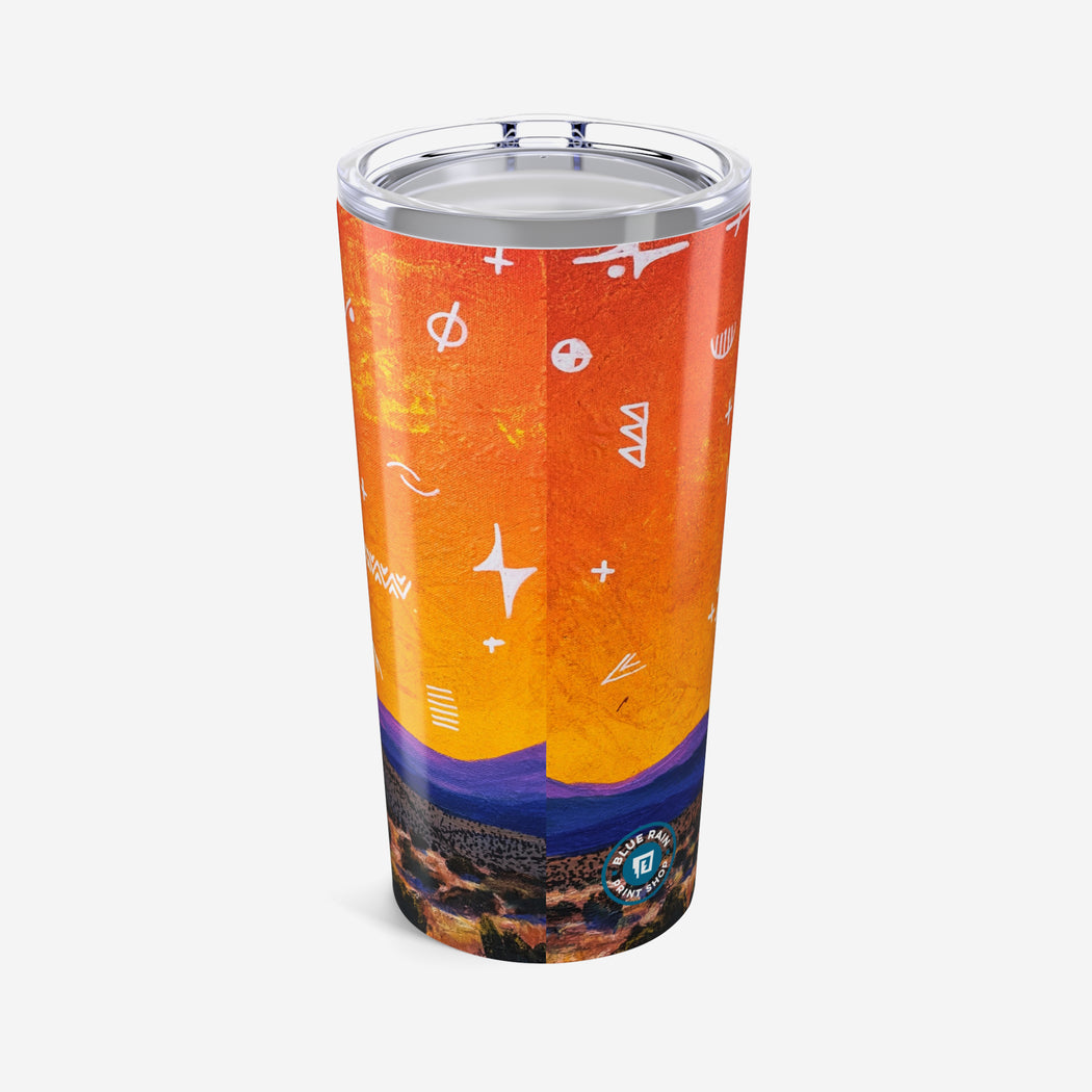 This 20oz tumbler is imprinted with Jesse Littlebird's Kewa Golden Hour. A stainless travel-size tumbler, it's vacuum-insulated and built to last. It's perfect to express your style.