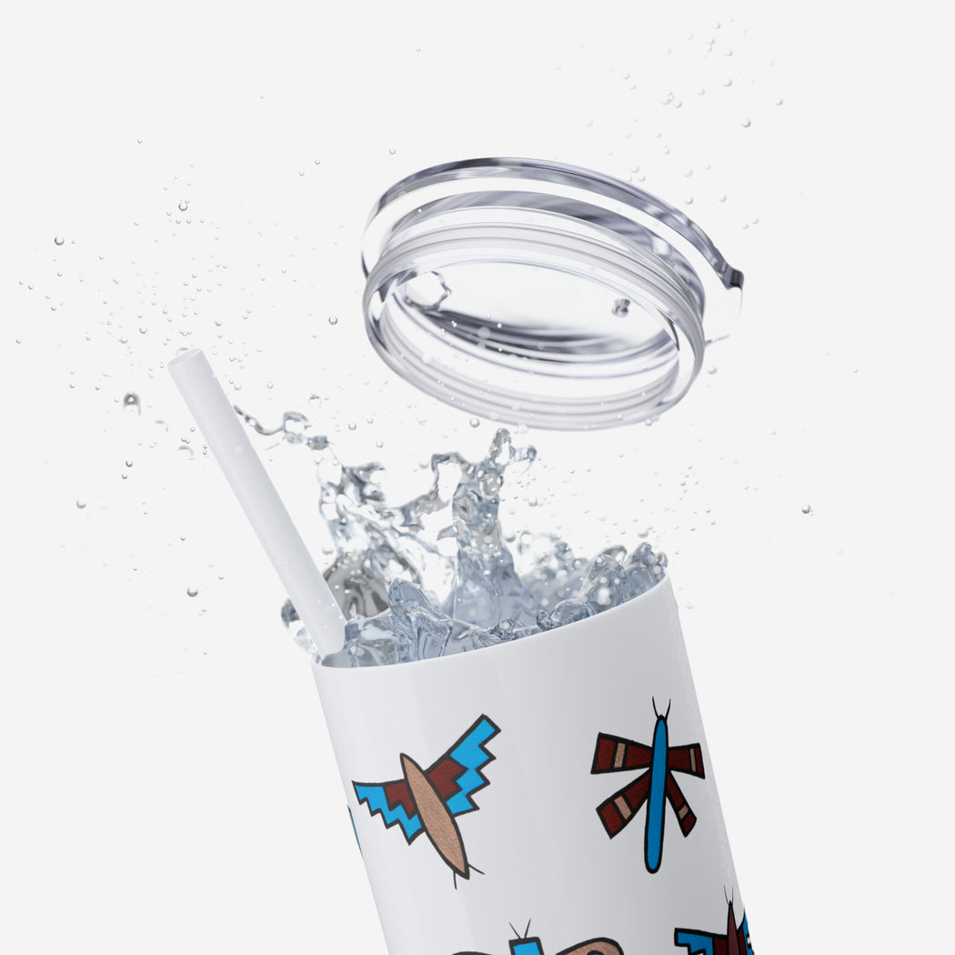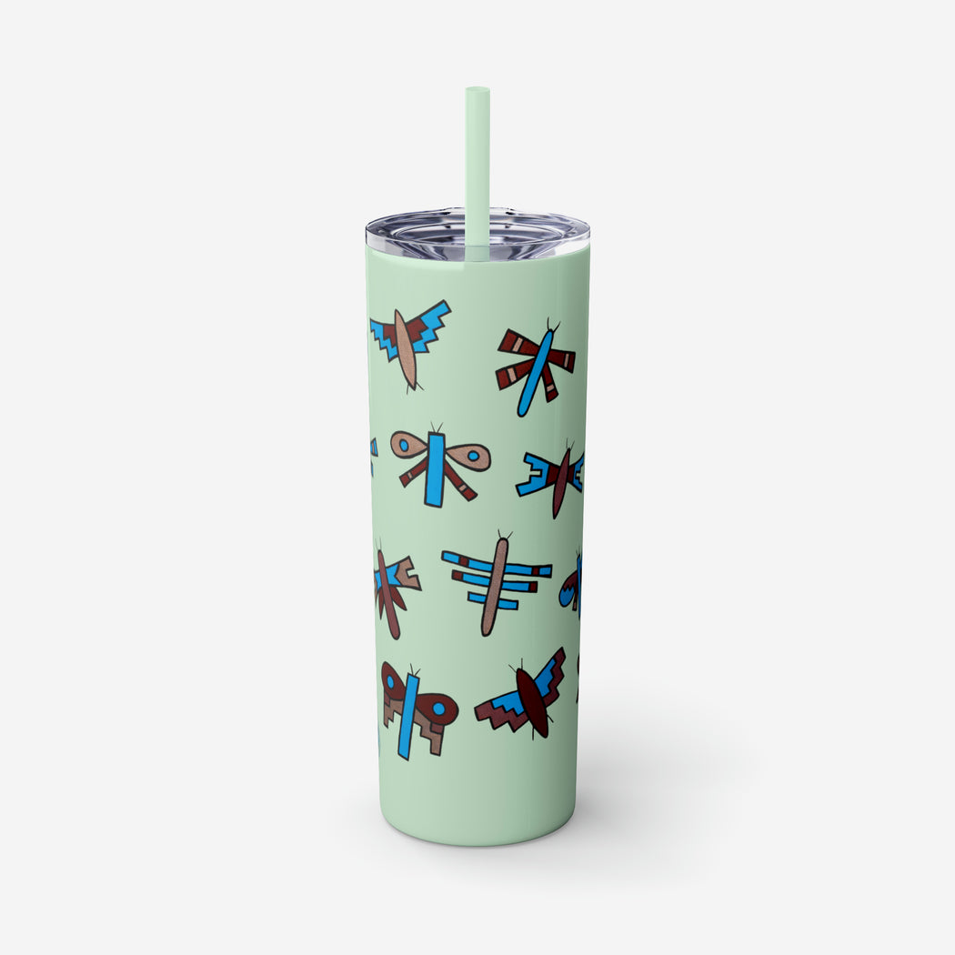 Skinny tumblers keep your drinks hot for 12 hours and cold for 24 hours, making them the perfect sipping companion all year round. Printed with Jody Naranjo's Native Dragonflies.