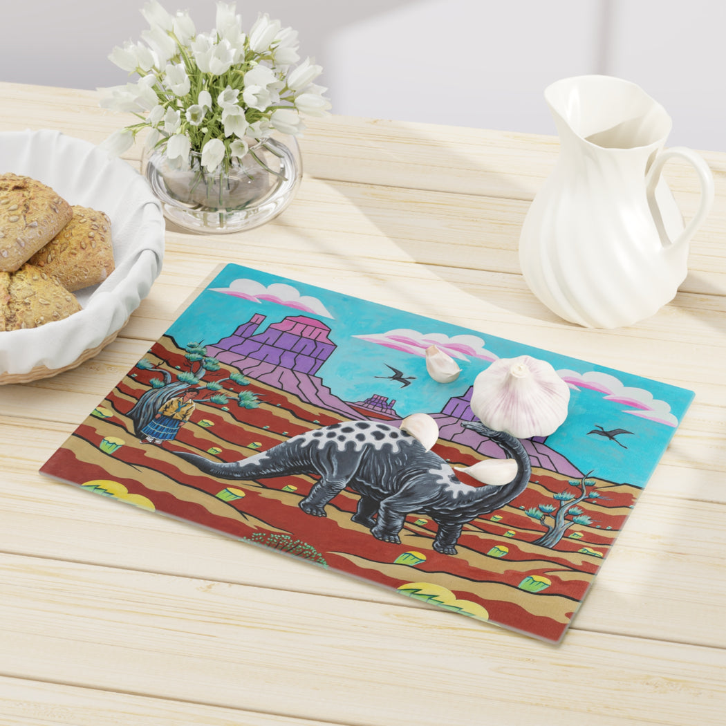 This glass serving tray is perfect for serving your fine gourmet cheeses and crackers.  A wonderfully unique addition to any chef’s arsenal with Ryan Singer's Taking a Walk.
