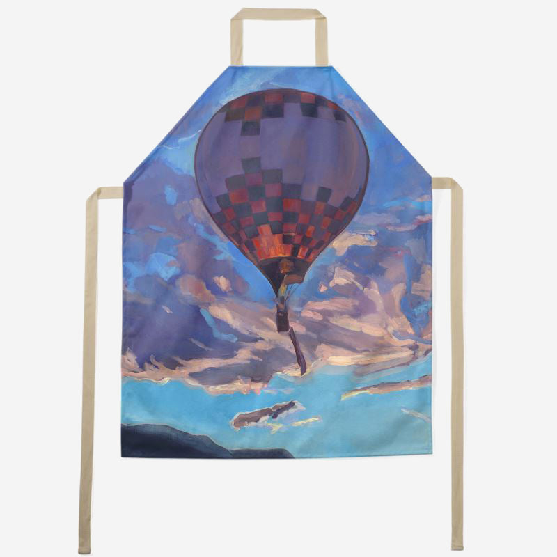 Aprons are handmade and printed with Kathryn Stedham's Up and Away, Sandia Sky.