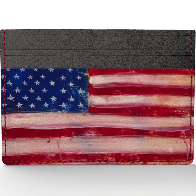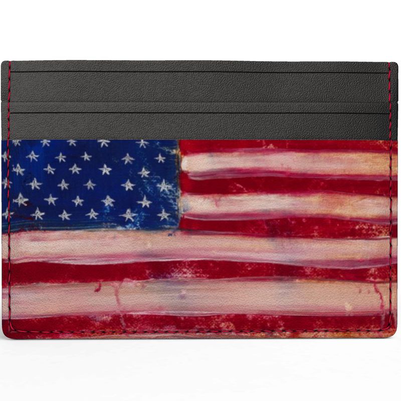 This custom leather card holder is imprinted with Larry D. Blissett’s US Flag.