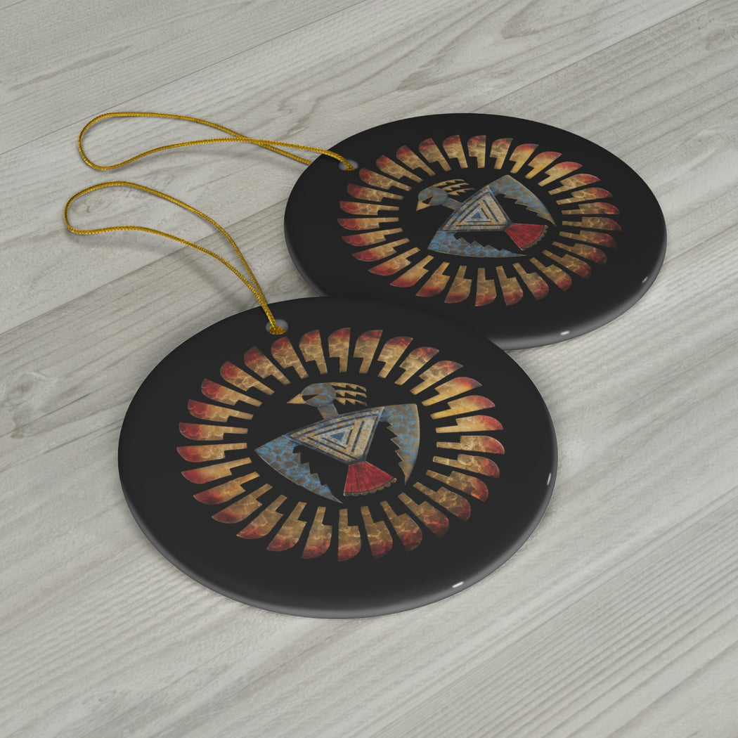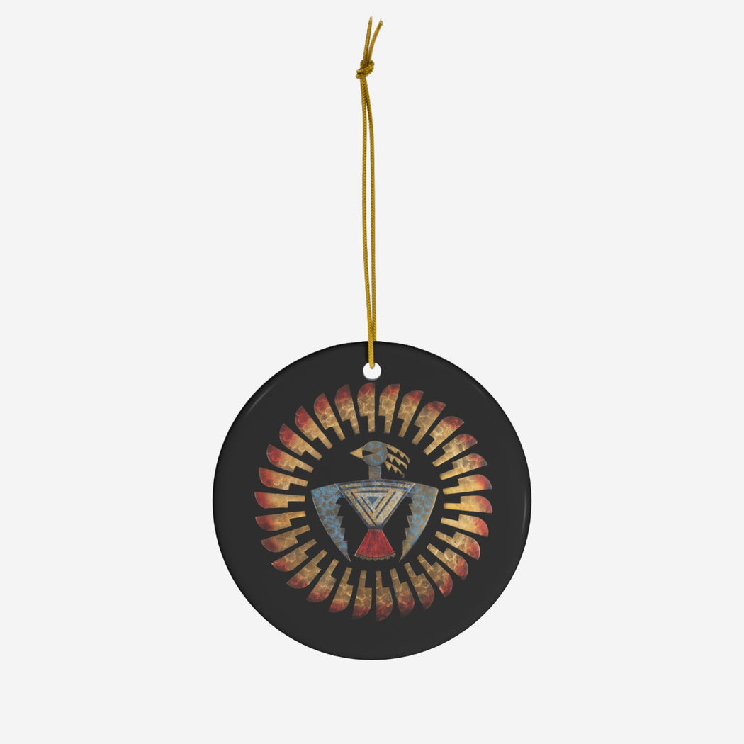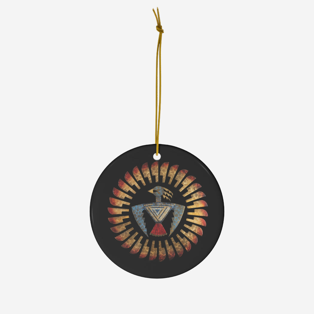 This custom-made ceramic ornament can be the perfect heirloom to use year after year, printed with Leroy Garcia's Circumspect.