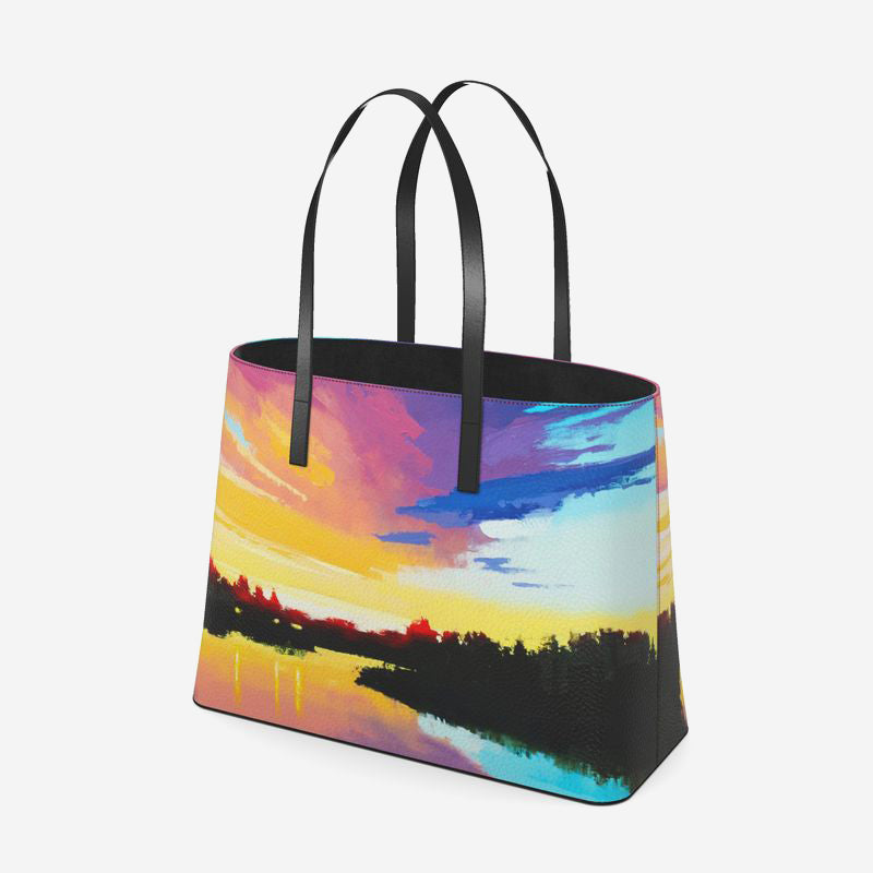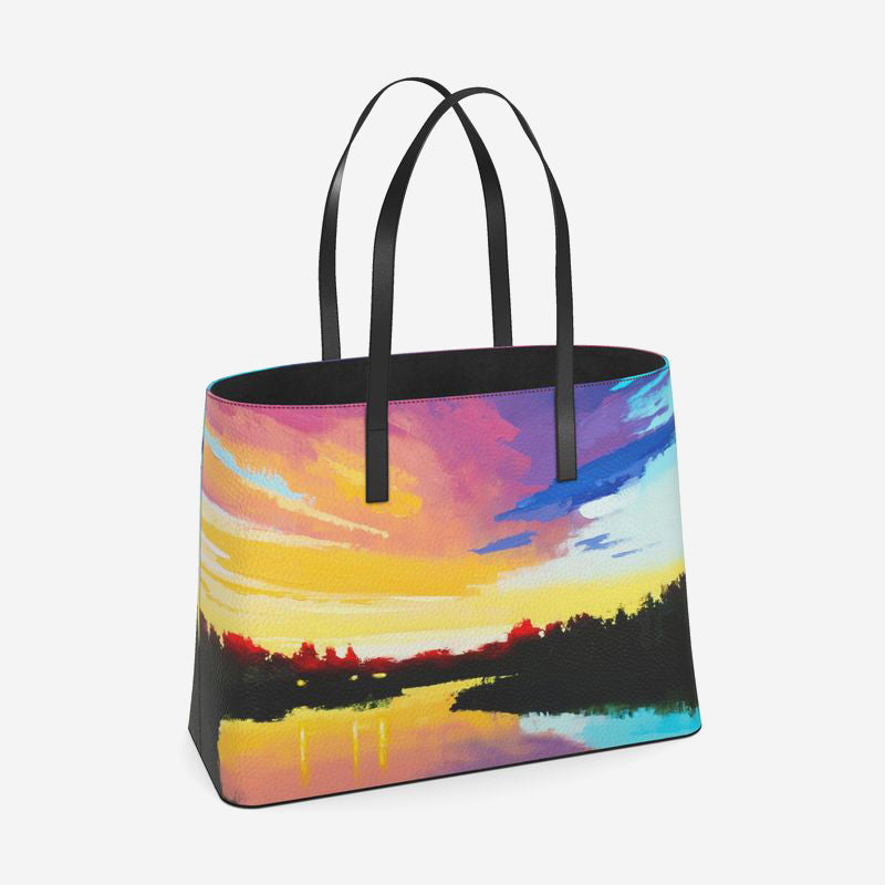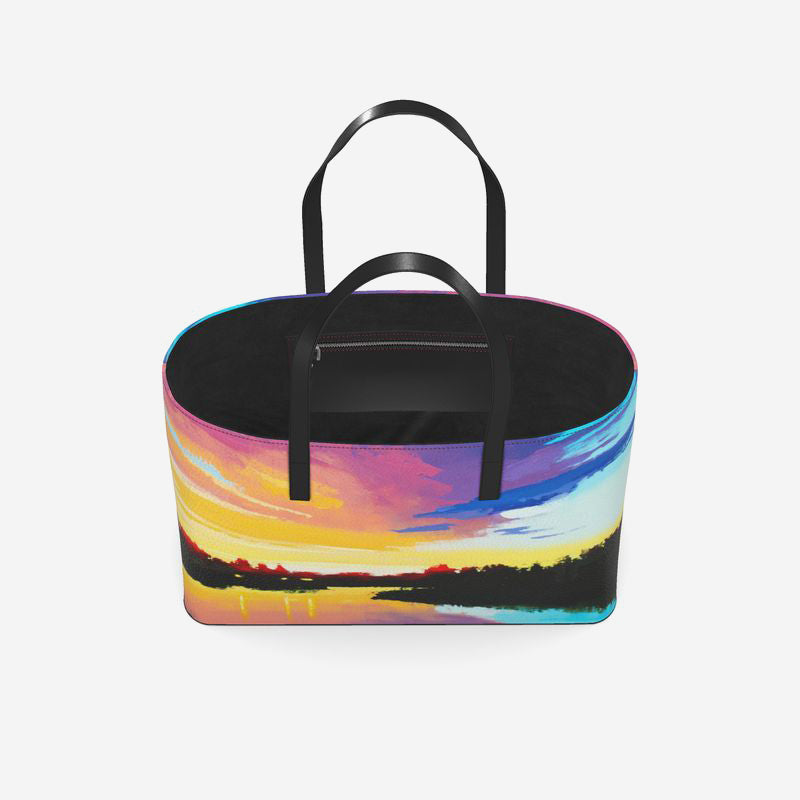 This stunning, custom leather tote is imprinted with Matthew Sievers The Winding River.
