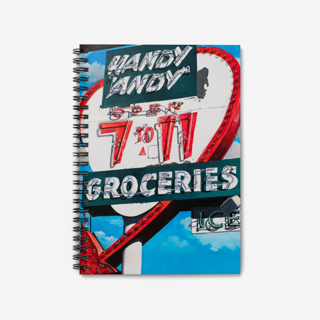 This spiral notebook is imprinted with Tony De Luz's  Handy Andy.  Shopping lists, school notes or poems — a perfect companion for everyday life.