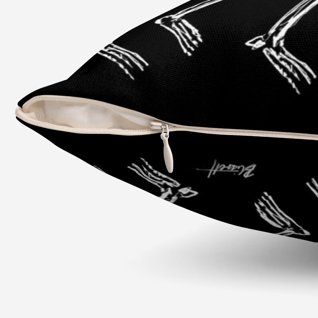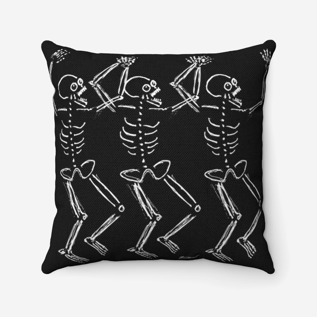 Liven up your space with a pillow beautifully printed with Larry D. Blissett’s Eskeleto Bailando.  A chic addition to your home or office.