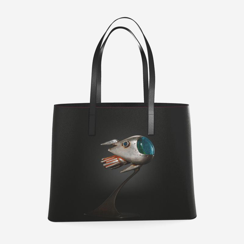 This stunning, custom leather tote is imprinted with Rik Allen's Herculus Herotia.