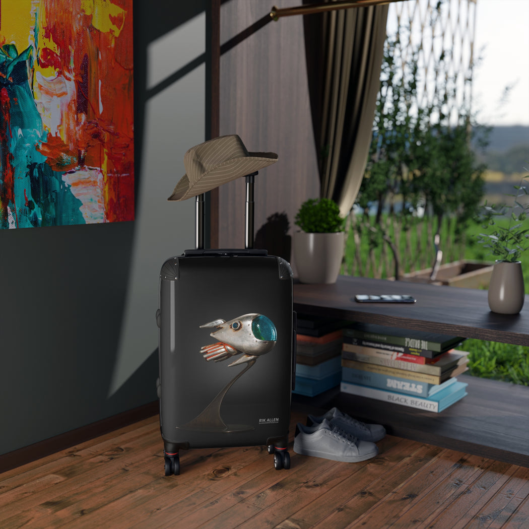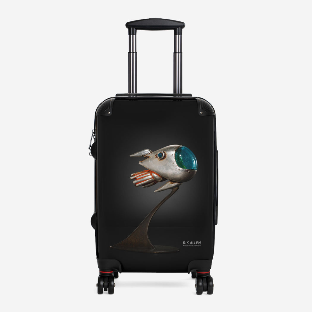Make a bold statement with this wheeled carry on imprinted with Rik Allen's Herculus Herotia.