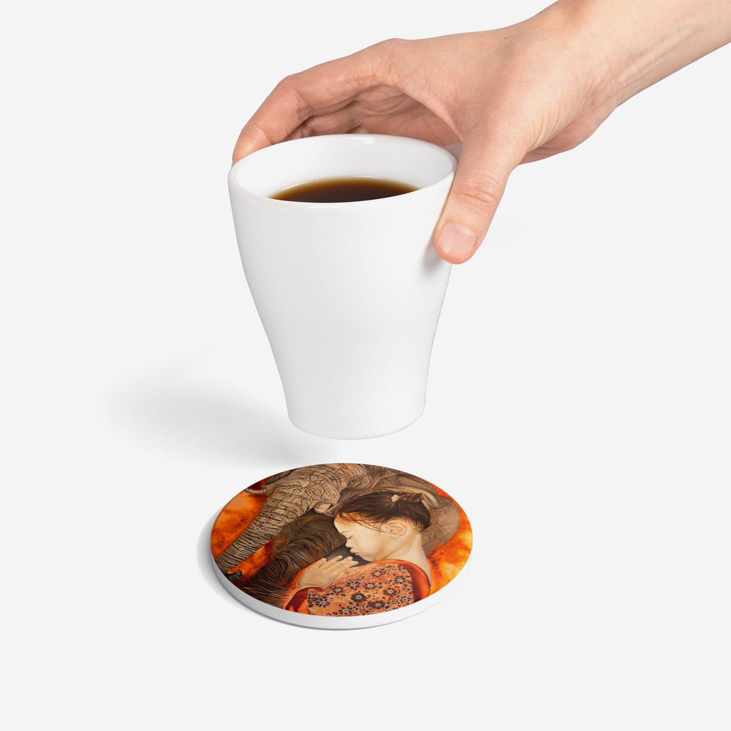 Add a splash of color and charm to your space with Robin Jones Light of Knowledge ceramic coasters. Use them while enjoying cozy coffee mornings or hosting parties with friends and family—keeping surfaces safe and stylish.