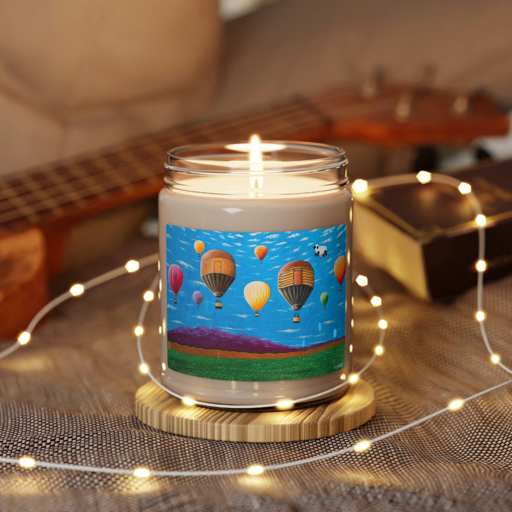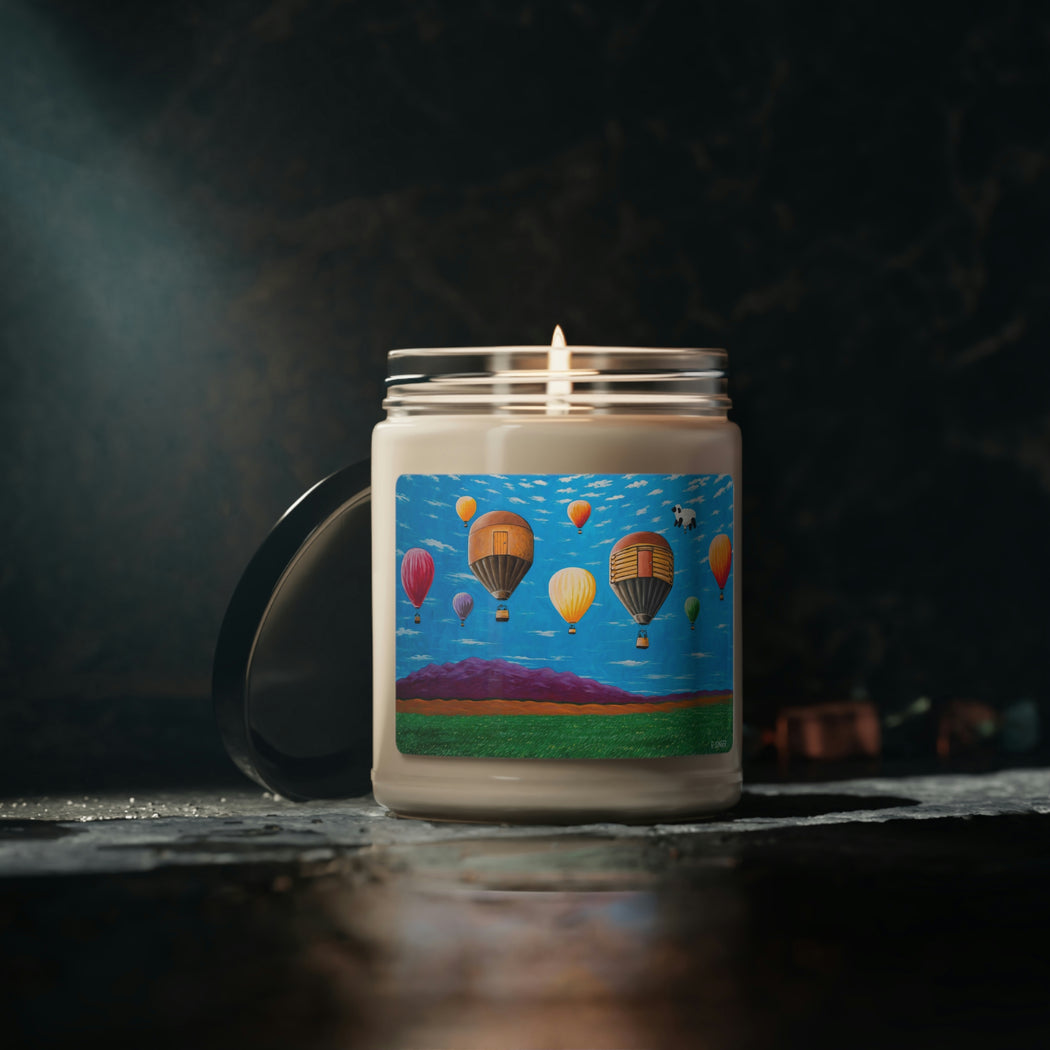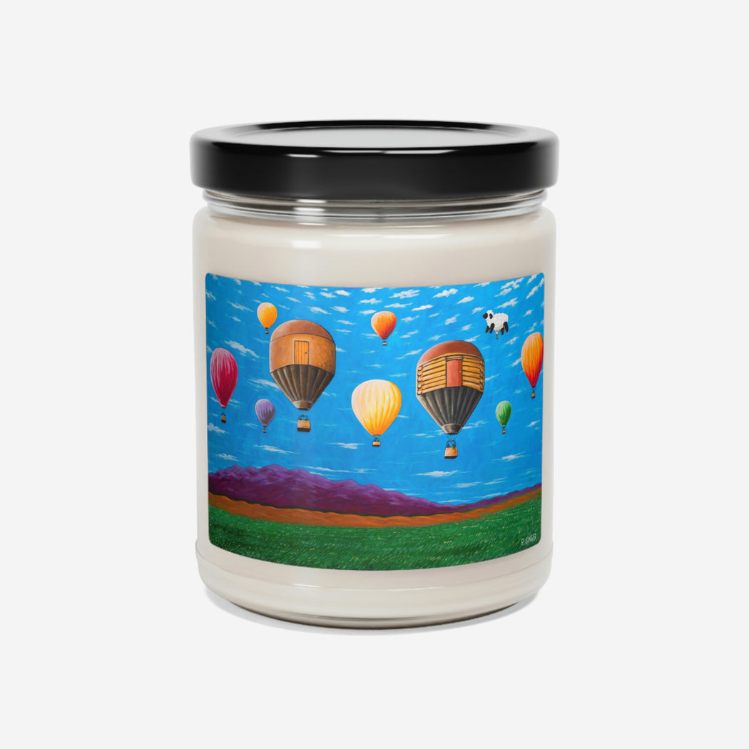 Packed with immersive aromas, these scented candles are made with 100% natural soy wax blend.  Printed with Ryan Singer's Two Hogans.