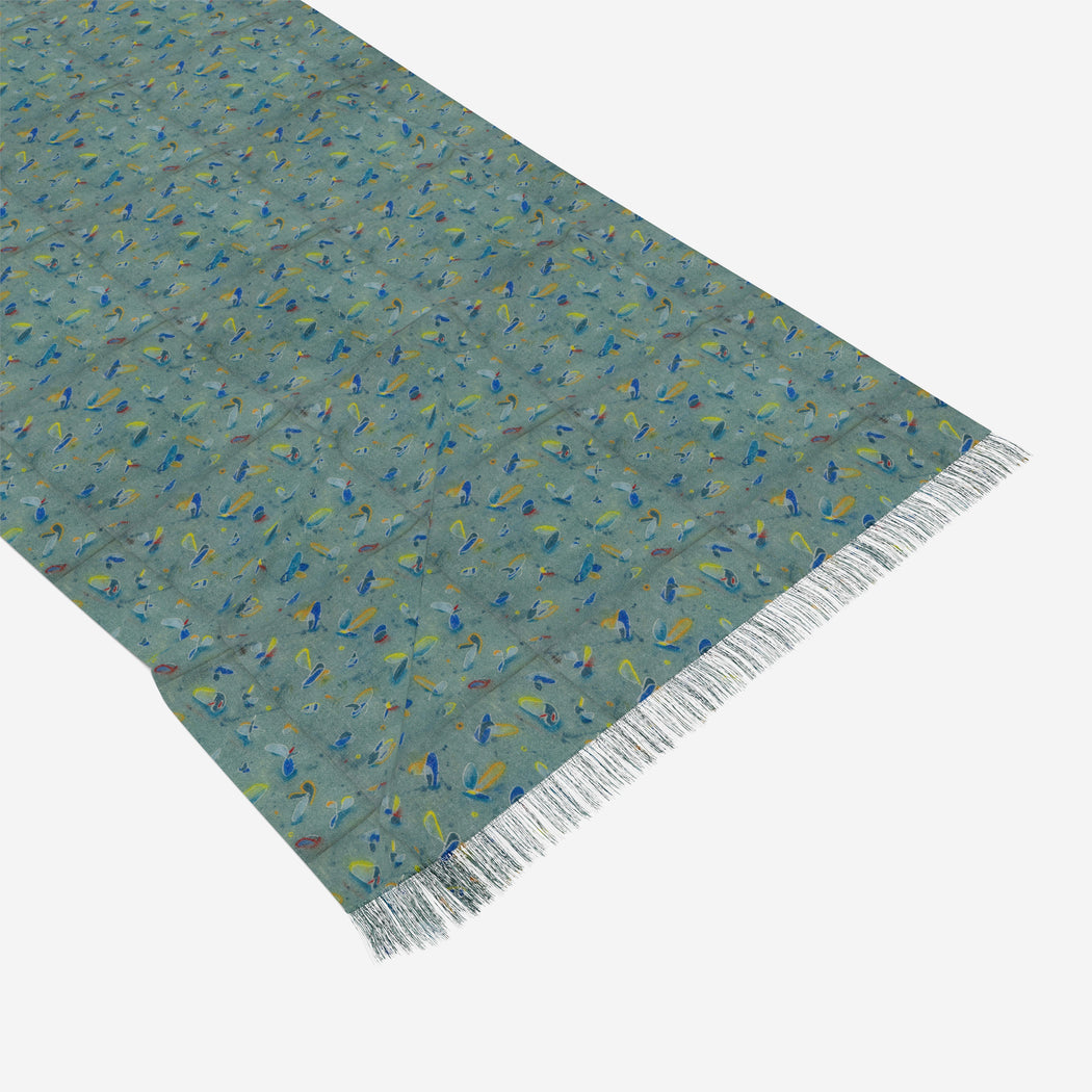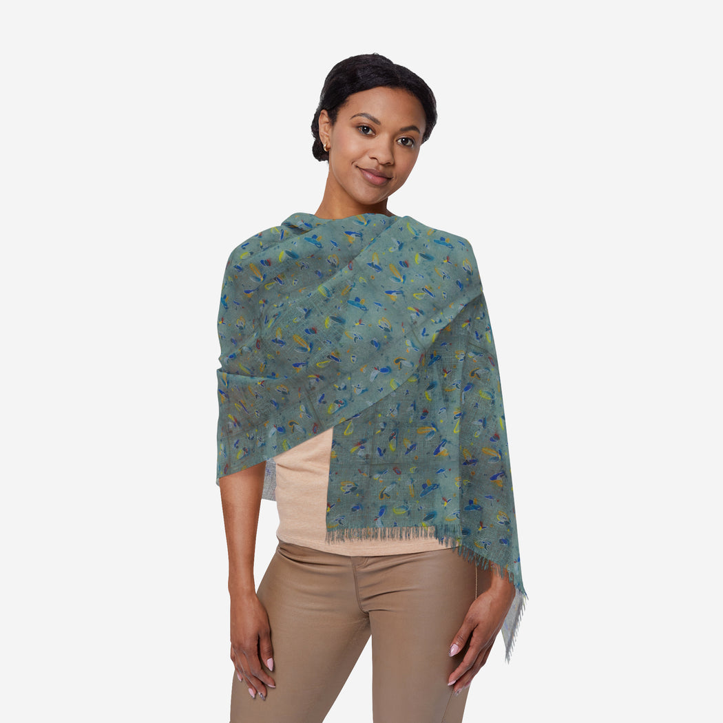 Create the perfect accessory that ties together any outfit with these long, lightweight scarves. Each scarf is transparent and printed with Helen K. Tindel's Las Abejas.