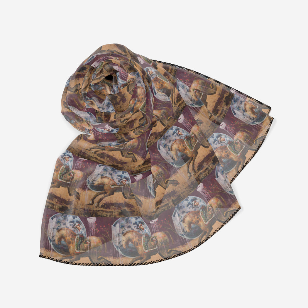 Create the perfect accessory that ties together any outfit with these sheer, extremely light and airy scarves. Printed with Rimi Yang's Spring of Love.