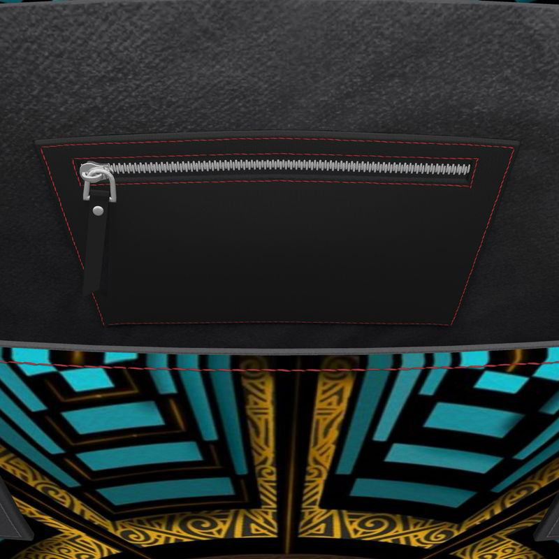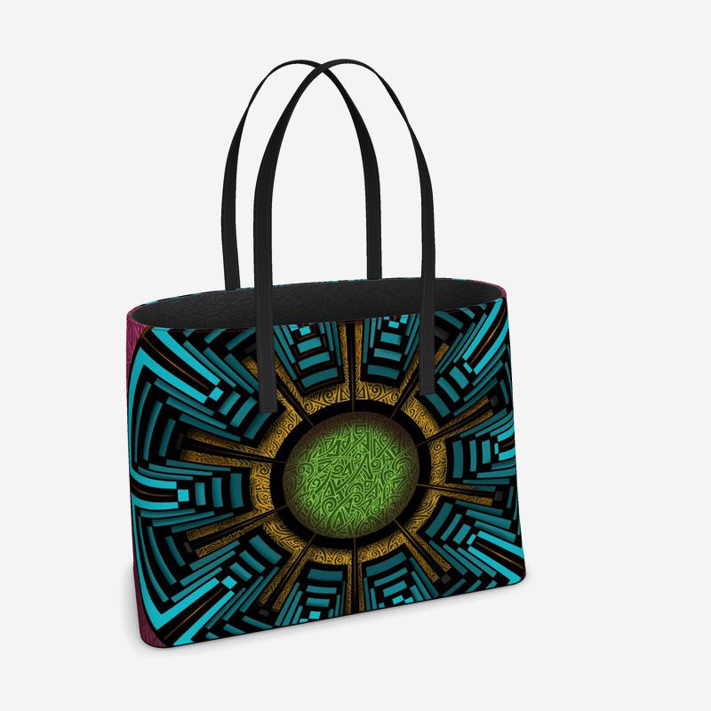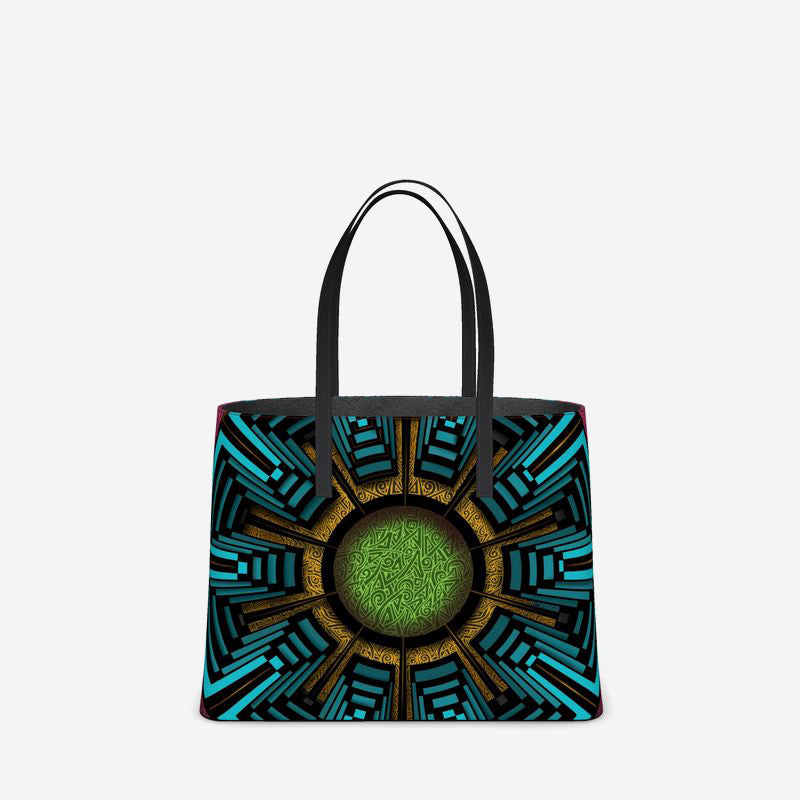 This stunning, custom leather tote is imprinted with Thomas Breeze Marcus's Basket Space Odyssey.