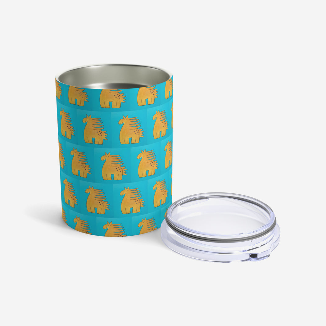 This 10oz tumbler is imprinted with Jody Naranjo’s Horse. A stainless travel-size tumbler, it's vacuum-insulated and built to last. It's perfect to express your style.