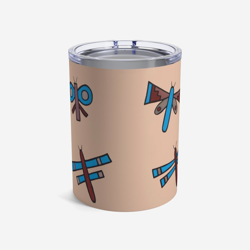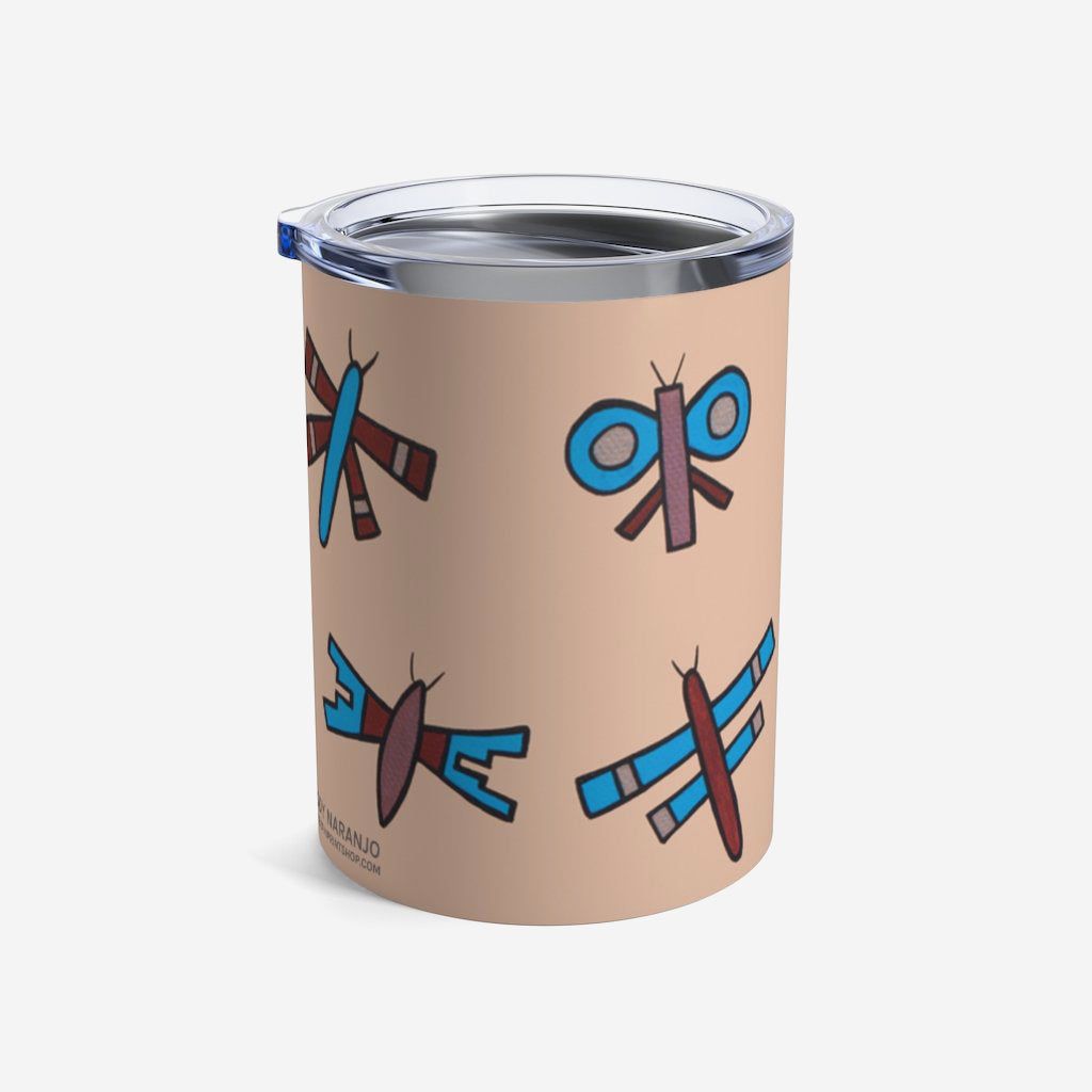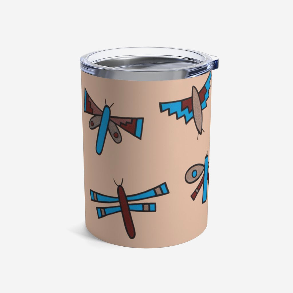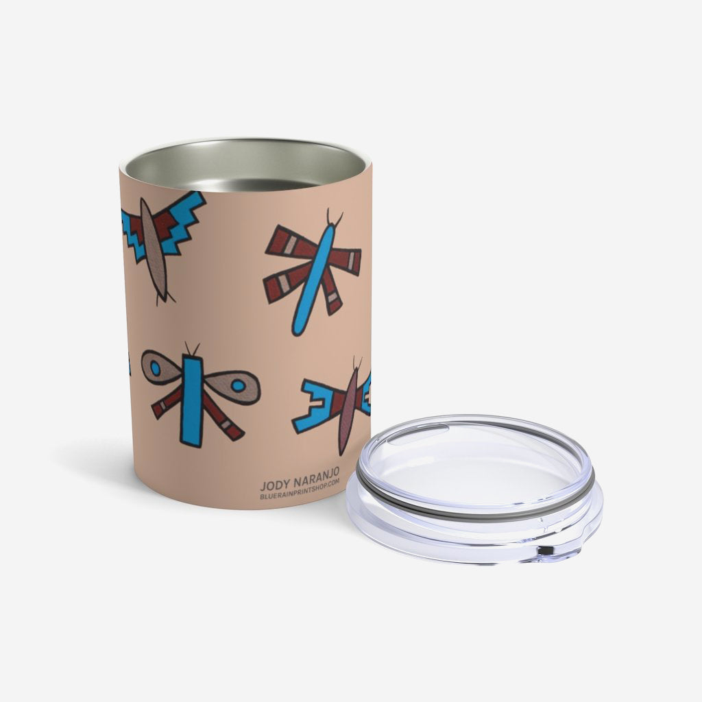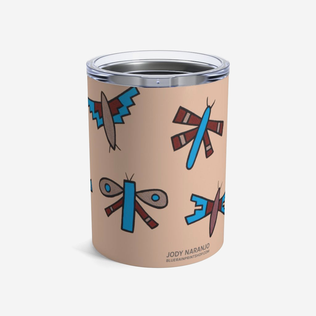 This 10oz tumbler is imprinted with Jody Naranjo’s Native Dragonflies. A stainless travel-size tumbler, it's vacuum-insulated and built to last. It's perfect to express your style.