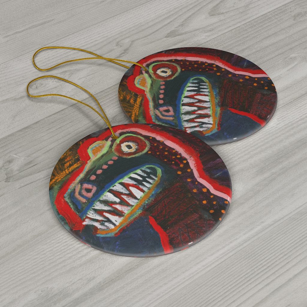 This custom-made ceramic ornament can be the perfect heirloom to use year after year, printed with Larry D. Blissett’s Where’s The Bacon Dammit???!!!